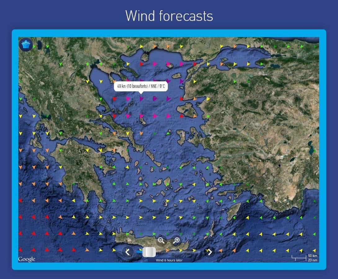 - Ver la velocidad del viento actual y las previsiones de viento a 48 horas en el mapa