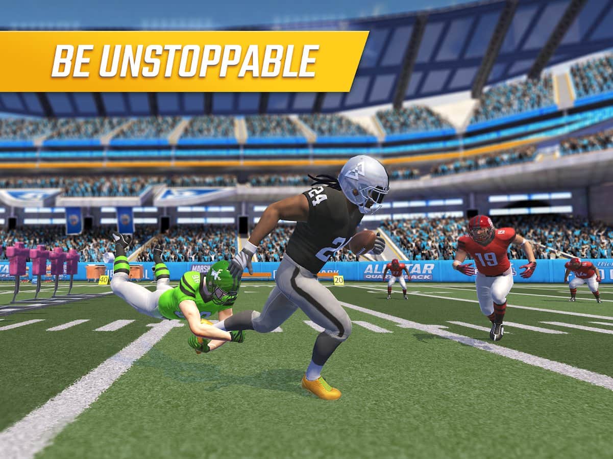 Marshawn Lynch Pro Football 19 - un simulador de fútbol americano en el que asumes el papel del atacante y tomas posesión del balón para intentar llegar al borde opuesto del campo, mientras evitas obstáculos y defensores. A pesar de que a primera vista la jugabilidad puede parecer bastante simple, la ejecución general del proyecto agrega muchas cosas positivas que te permitirán pasar un buen rato en compañía de atletas.