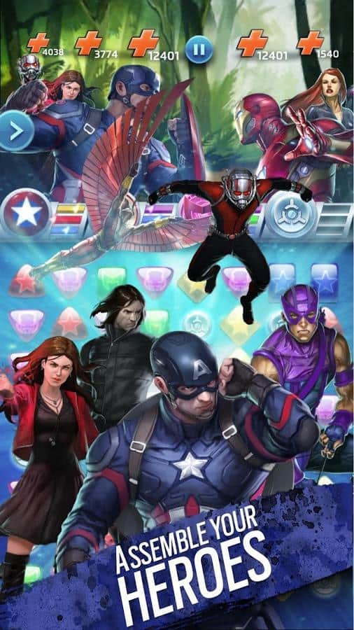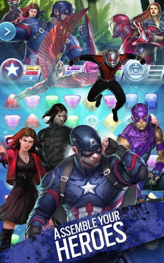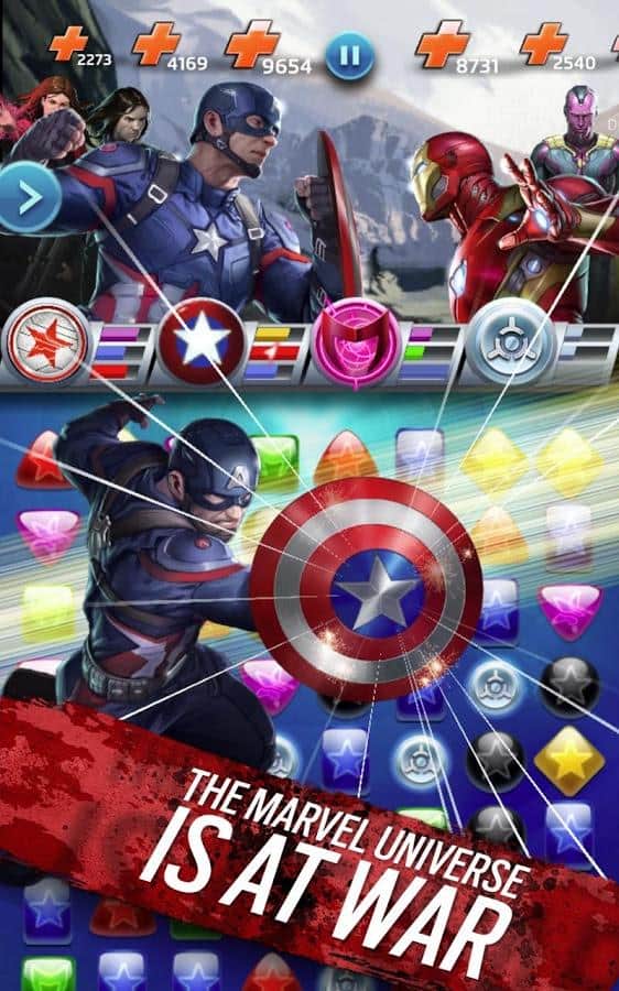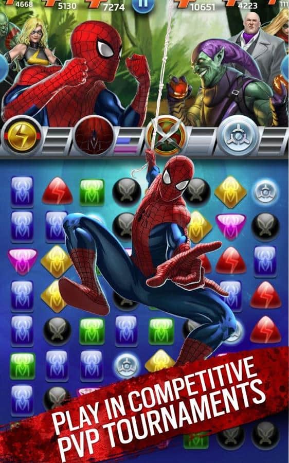 Marvel Puzzle Quest Dark Reign - un excelente juego de estilo "tres en raya" con elementos RPG para Android. Reúne un equipo de los más grandes superhéroes y villanos de Marvel y lucha con la marca registrada Puzzle Quest. Un género bien conocido, se ha vuelto aún más interesante gracias a su componente de rol y a la multitud de héroes.