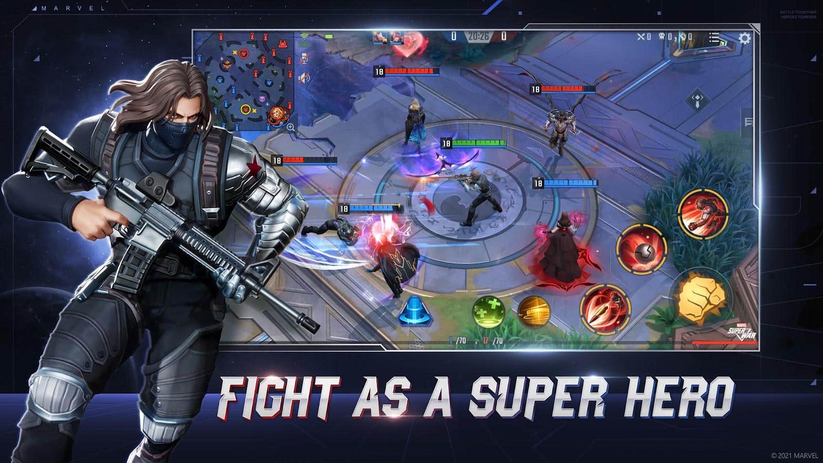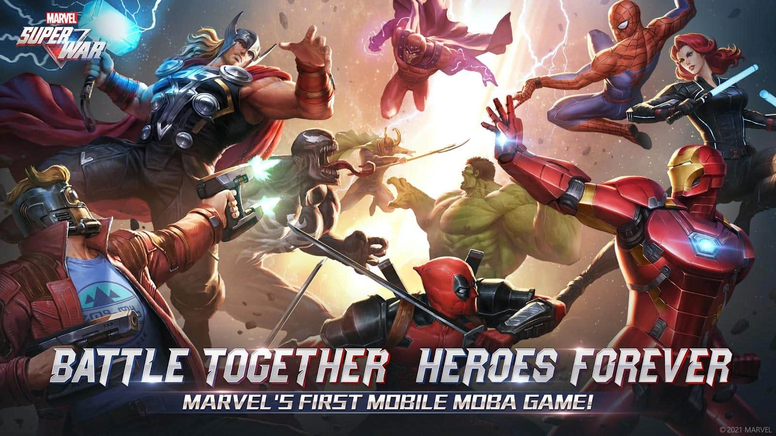 MARVEL Super War - MOBA dinámico con todos los héroes de MARVEL en Android. Elige tu personaje favorito, cada uno con estilos y habilidades únicas, y únete a esta lucha estelar en la arena 5x5 en tiempo real. Muestra tu fuerza utilizando combinaciones especiales de ataques, el efecto dinámico y la capacidad de moverte en combate. Forma equipo con tus amigos, reúne a tu equipo ideal y únete a un universo desconocido de MARVEL MOBA. Efectos coloridos y brillantes, controles simples y emocionantes combates.
