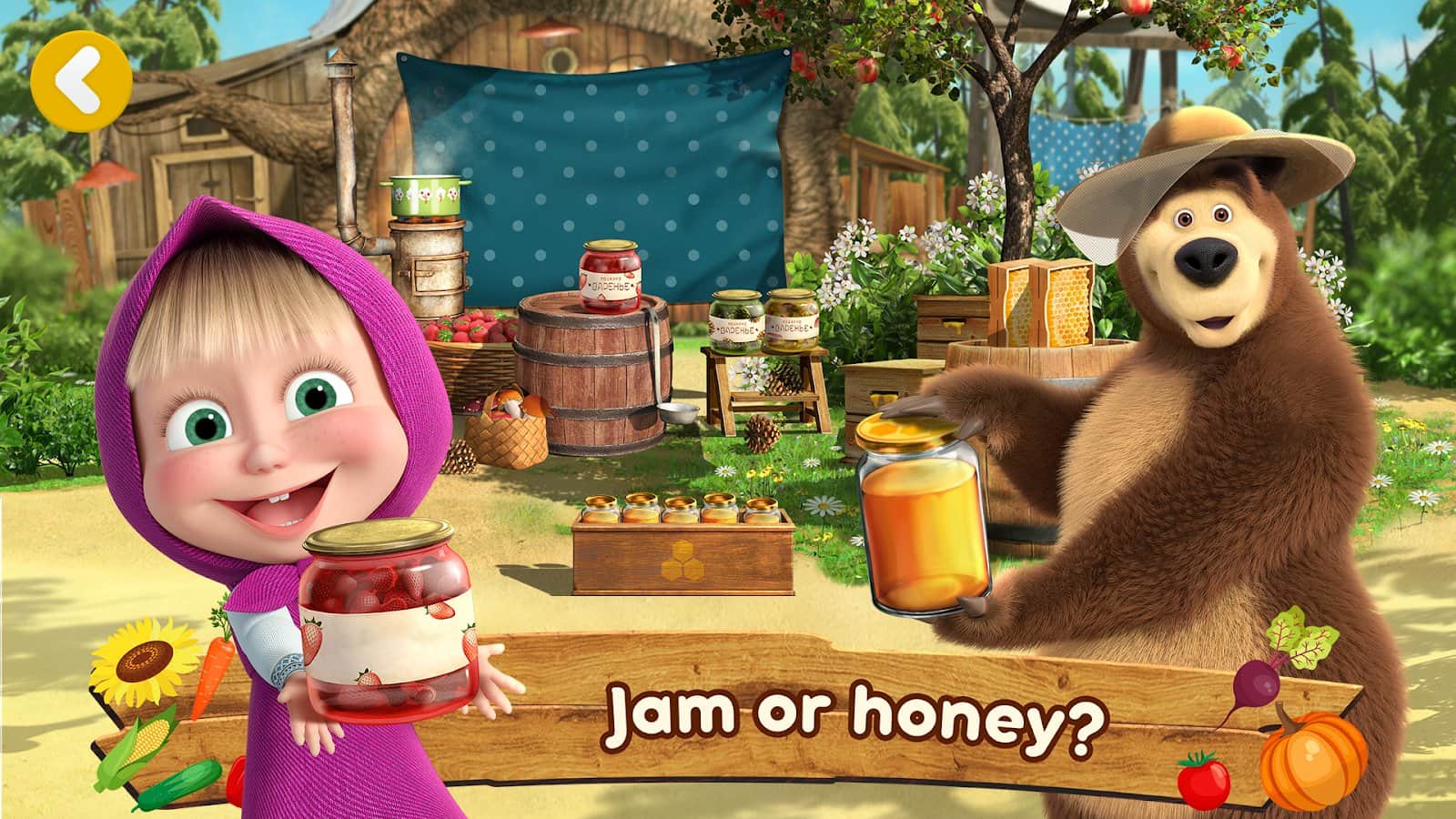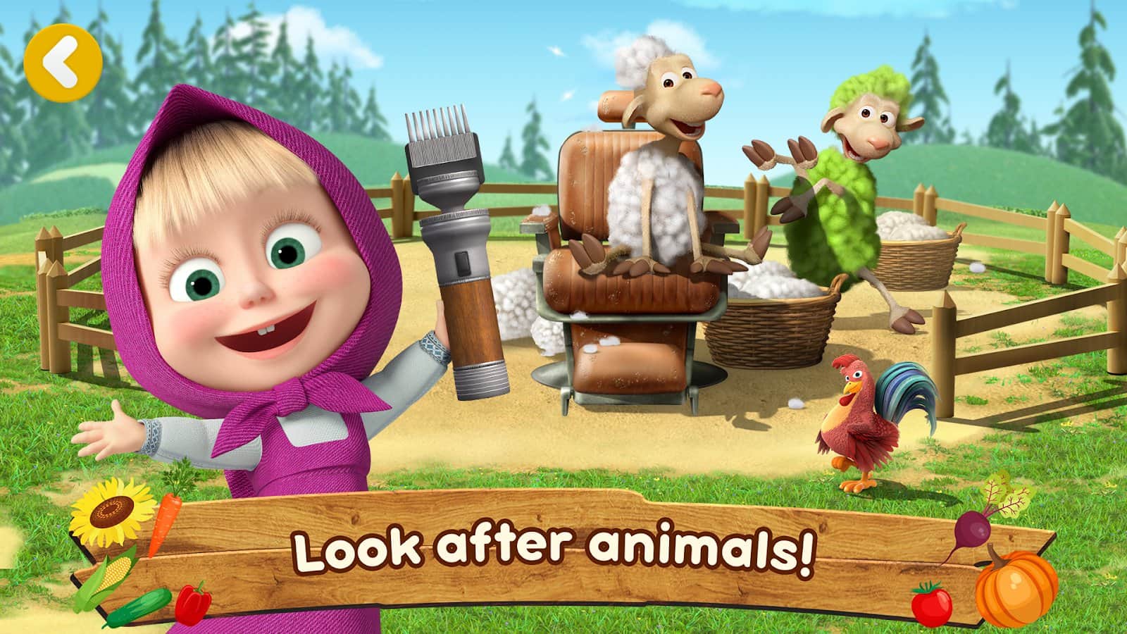 Masha y el Oso: ¡Juego de Granja! - ¡Masha nunca se queda quieta, y el Oso siempre tiene que ayudarla o corregir los inconvenientes que ha causado! Ahora estos dos divertidos personajes han decidido abrir juntos su propia granja, donde cultivarán verduras y cosecharán, criarán ovejas reales y las esquilarán, cuidarán de las abejas y recogerán deliciosa miel de colmenas, pescarán y recogerán huevos en un gallinero. Siempre estén listos para recibir visitantes, entre los cuales habrá un gran número de otros animales: Lobos, Pingüino, Oso Himalayo, Tigre, Panda y Oso.