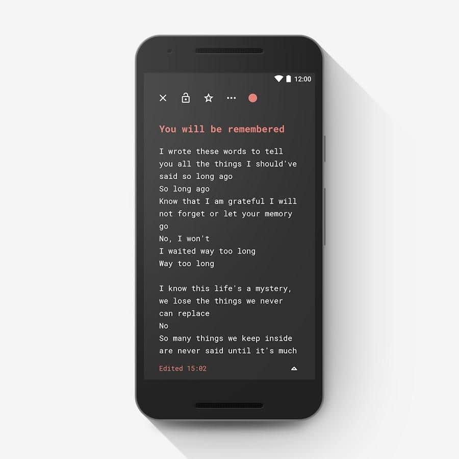 Notas de material: Las notas coloridas son una solución simple para aquellos que a menudo olvidan algo. Estas notas no solo son cómodas, sino también bastante versátiles. Podrás elegir los colores que las distinguirán por su importancia o para distinguir una categoría específica de notas. Además, para la seguridad de tus datos, necesitarás confirmar el código de acceso, lo que significa que tus datos solo estarán disponibles para ti. En general, la aplicación es bastante simple y no consume muchos recursos del smartphone, lo que la hace única.