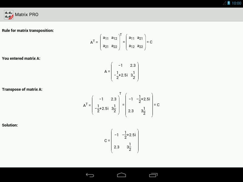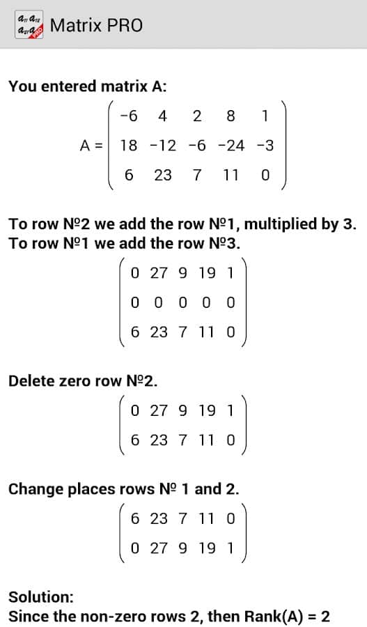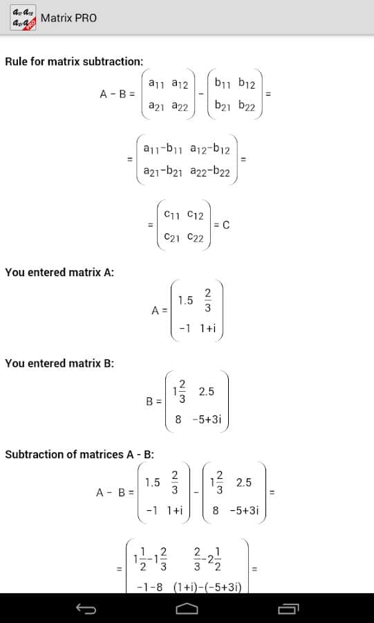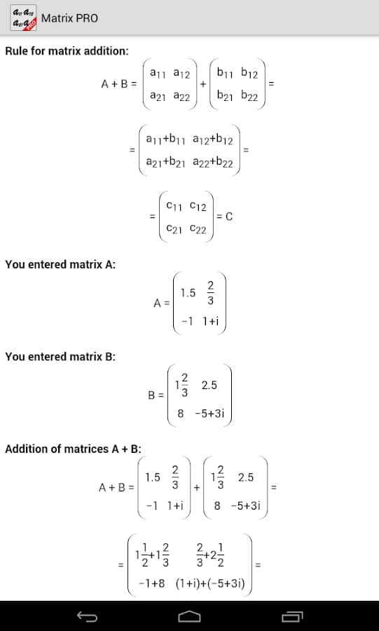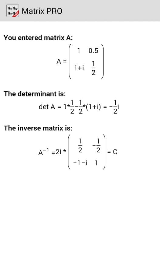 Comentarios a Matrix Calculator PRO en Android