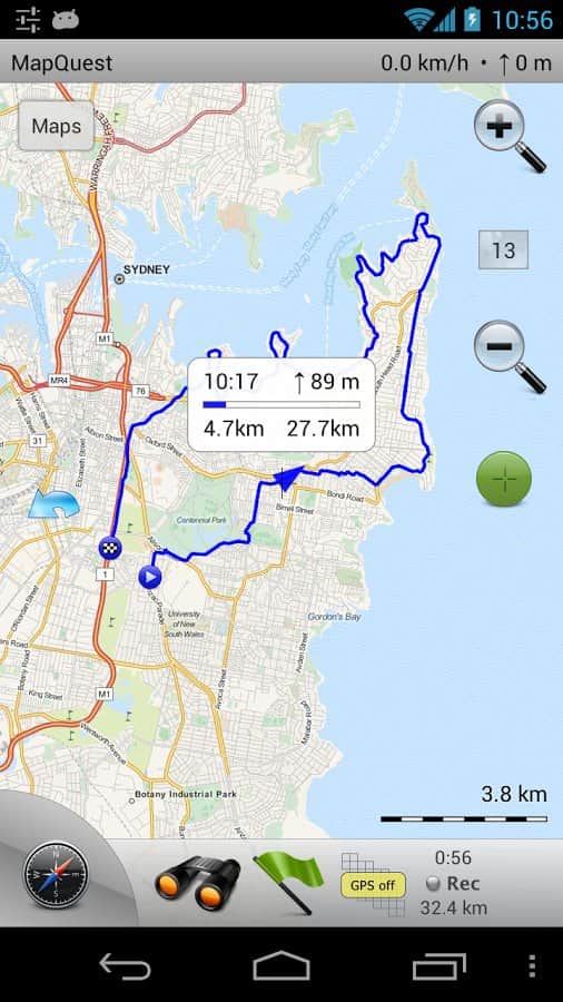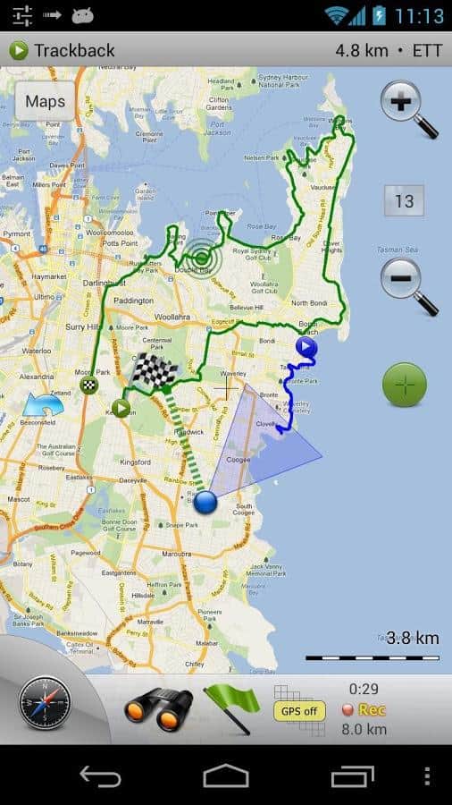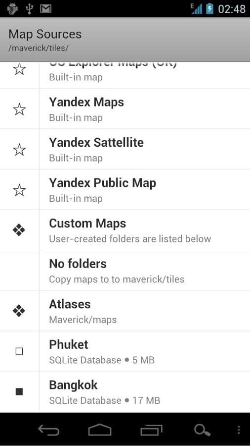 Maverick Pro - Esta aplicación es perfecta para los amantes del senderismo o para caminar por una ciudad desconocida. Utiliza mapas incluso sin conexión a Internet. Todas las cartas en la aplicación se almacenan automáticamente en caché para su uso sin conexión. Usa Mobile Atlas Creator para descargar mapas o MAPC2MAPC para convertir mapas de otros formatos. También presenta múltiples mapas en línea globales y regionales