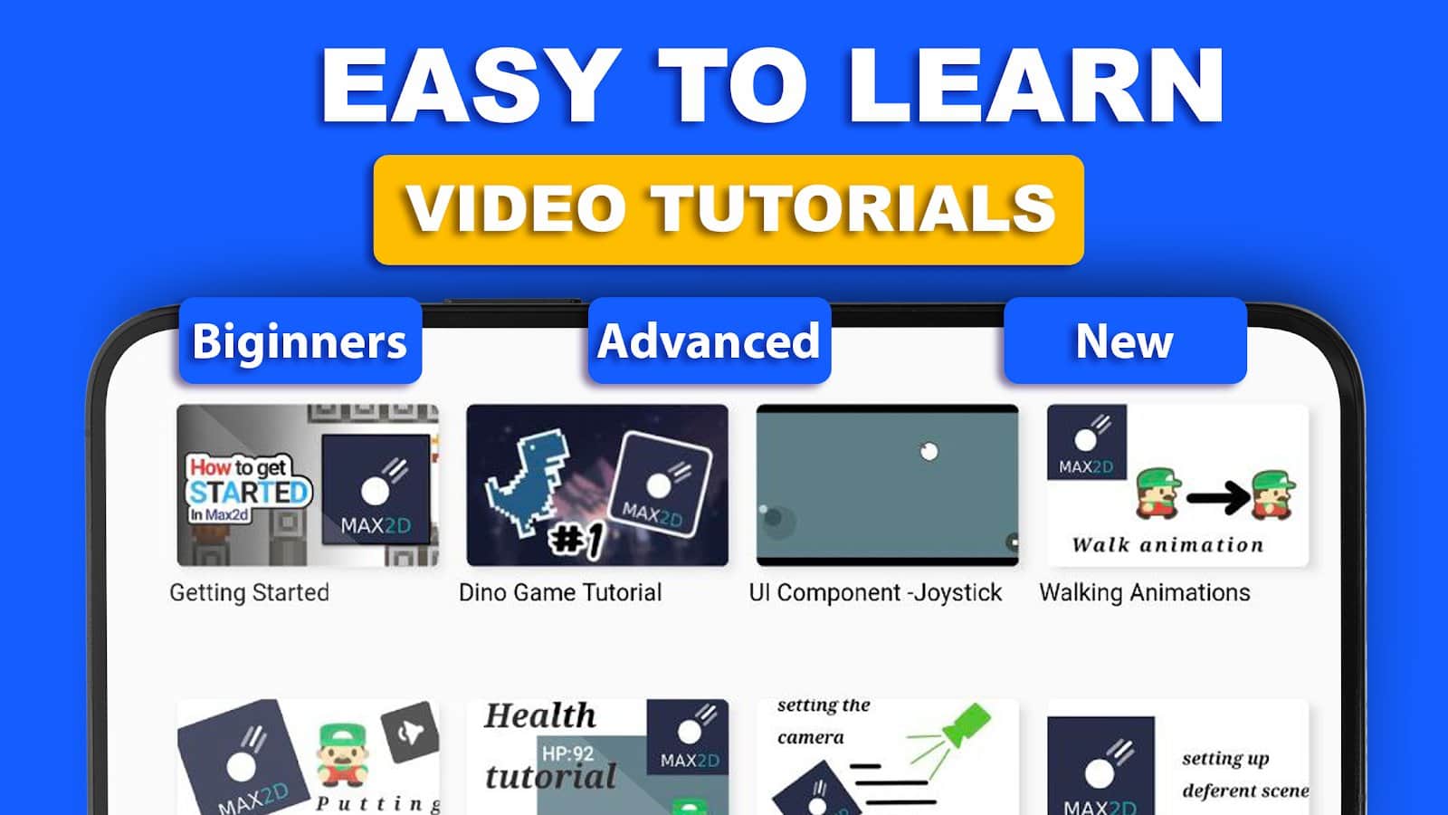 Max2D: Creador de Juegos, Motor de Juegos - ¡Una gran cantidad de materiales útiles, capacitación, plantillas de juegos creados y herramientas profesionales se han vuelto accesibles para todos los que desean desarrollar nuevos juegos! Para comenzar, solo estudia la información básica y familiarízate con los ejemplos de trabajo, sin pensar en aprender a programar, prácticamente no te será útil. Después del primer intento de crear algo propio, puedes probar todo fácilmente en la práctica y más tarde probar el juego en 190 países disponibles. ¡Crea y experimenta, tal vez tu juego se vuelva popular!