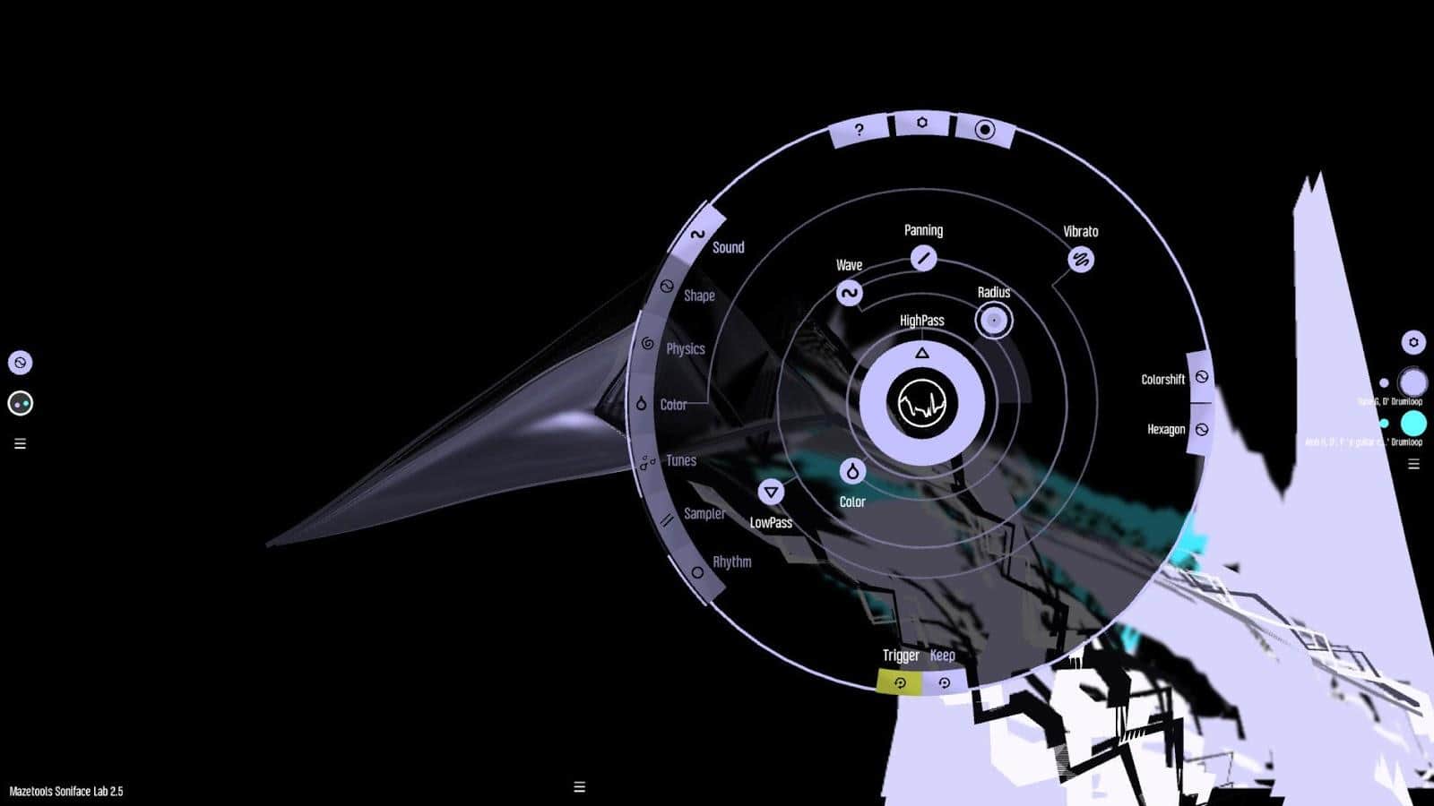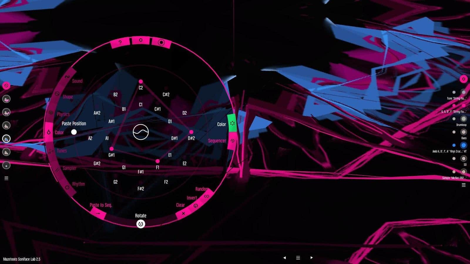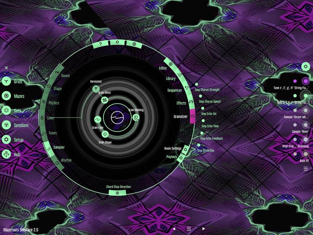 la aplicación Mazetools Soniface te brindará la oportunidad de crear composiciones musicales únicas en formas inusuales. Para entender la lógica de componer música, puede que tengas que ver el tutorial.