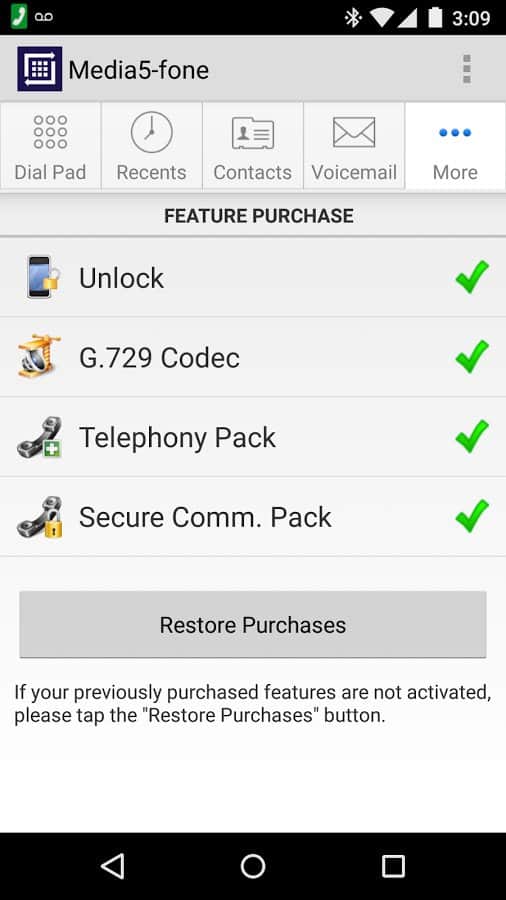 Media5-fone es un cliente suave para Android del desarrollador media5corp, que te deleitará con la calidad de sonido para hacer o recibir llamadas telefónicas económicas a través de Internet utilizando Wi-Fi o conexión 3G. Cabe señalar que Media5 no es un proveedor de telefonía y debes obtener previamente una cuenta SIP de tu administrador de SIP IP-PBX o de tu servicio SIP.
