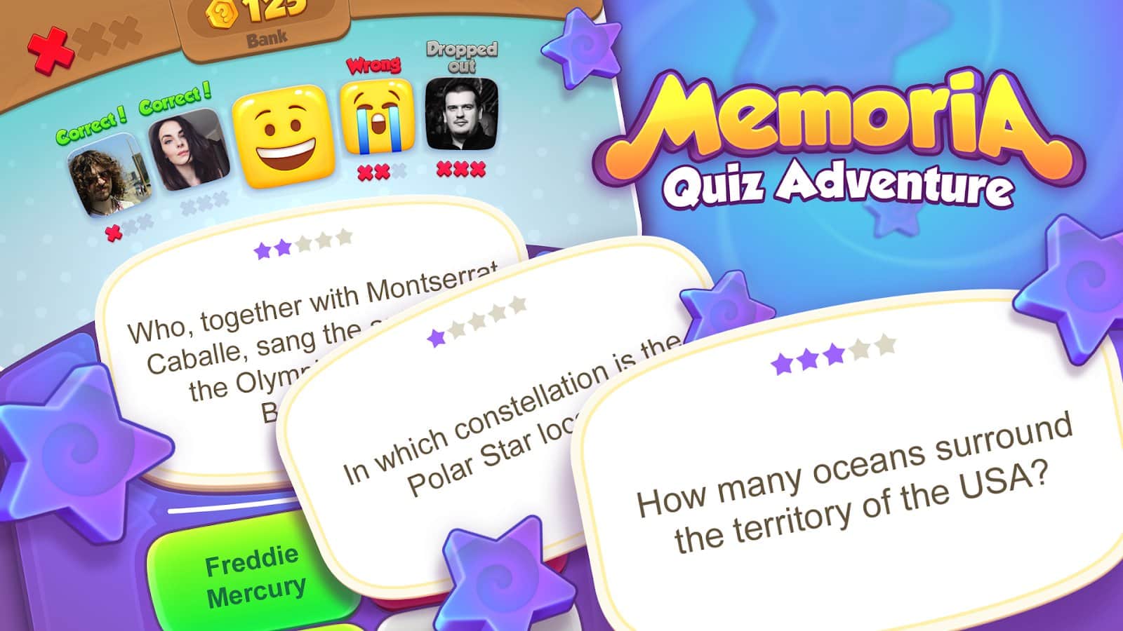 Memoria: Cuestionario en línea - Explora el universo de Memoria en detalle y recoge en él todas las valiosas recompensas por completar emocionantes cuestionarios. Conviértete en el mejor jugador al obtener muchos logros, así como entrar en la tabla de clasificación y permanecer allí por mucho tiempo, subiendo constantemente. Al principio de cada juego habrá cinco de ustedes, pero el pozo de premios irá solo a un jugador, y quién será depende solo de sus esfuerzos. Las preguntas pueden ser sobre cualquier tema, así que amplía tu conocimiento en la mayoría de los temas y aprende cosas nuevas.