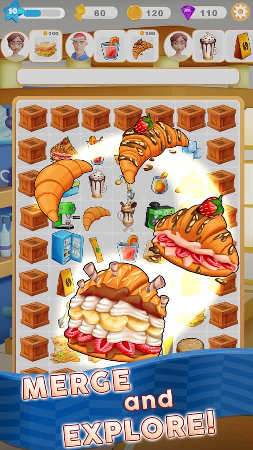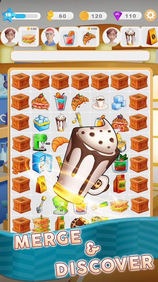 Merge Barista: Decoración de Café - Abre un nuevo café en tu ciudad, donde siempre hay comodidad y el aroma de platos deliciosos! Al principio, los locales están vacíos, pero más tarde, cuando avances en las ventas, podrás cambiar completamente la apariencia del café. Compra el equipo necesario para cocinar y almacenar alimentos, organiza mesas cómodas con sillas para los visitantes y descubre nuevas recetas para cocinar cada vez. Tendrás que atender a los clientes rápidamente jugando un emocionante juego de rompecabezas, ¡pero hazlo rápido o se irán!