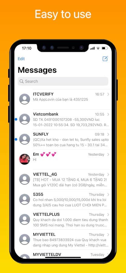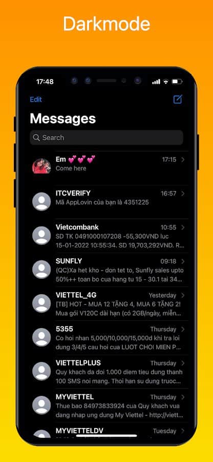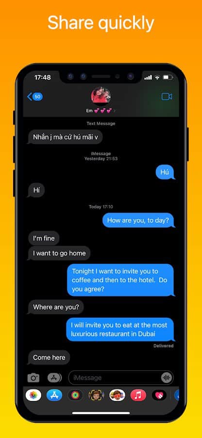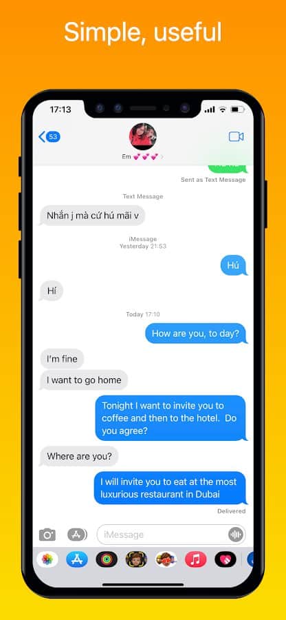 Mensajes iOS 15 - ¡Experimenta lo que es usar la funcionalidad del iPhone en Android! Al instalar esta aplicación, tendrás acceso a toda una gama de nuevas características: intercambio de mensajes interesantes, cambio entre temas claros y oscuros, desplazamiento rápido de mensajes hacia arriba o hacia abajo, búsqueda fácil de mensajes específicos, clasificación inteligente, anclaje de notificaciones importantes y soporte para varios idiomas del mundo. ¡Escribe, envía, elimina, edita mensajes fácilmente y disfruta de los resultados!