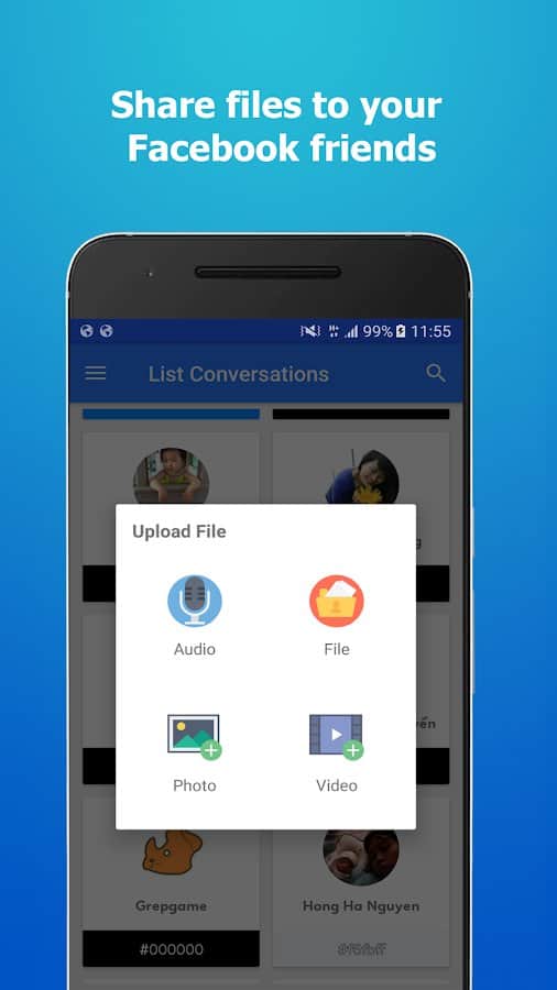 la capacidad de transferir archivos a través de Facebook Messenger;
