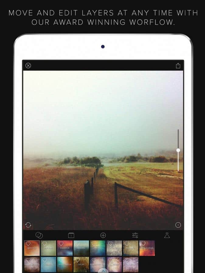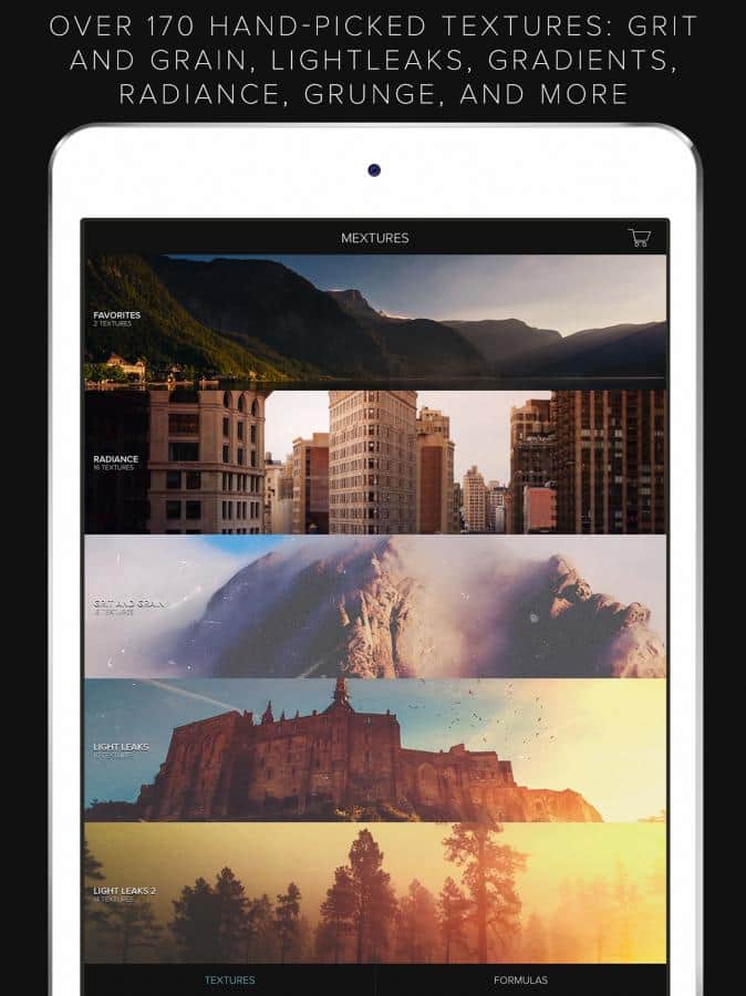 Para darle personalidad a tus fotos, a veces es necesario aplicar no filtros, sino texturas inusuales. Mextures es un buen asistente en esto, ya que la aplicación tiene una enorme cantidad de ellas: desde granos de película fotográfica y efectos de luz, hasta degradados.