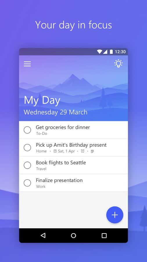 Microsoft To-Do - Planificar tu día será tan fácil con la nueva aplicación de la famosa empresa Microsoft. Este planificador es único no solo por su funcionalidad, sino también por su interfaz amigable. Planifica, asigna y agrega tus propias tareas de la manera correcta. Establece de manera independiente la cadena para ejecutar y un recordatorio, y luego no tendrás que preocuparte de olvidar. Reinstala el tiempo para las tareas que deben realizarse cada día, semana o mes para que el programa te recuerde puntualmente sobre ellas.