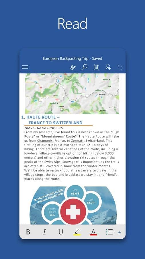 Microsoft Word - versión de Android de uno de los editores de texto más populares. La historia de este programa se remonta a varias décadas y Microsoft cada año intenta mejorar Word.