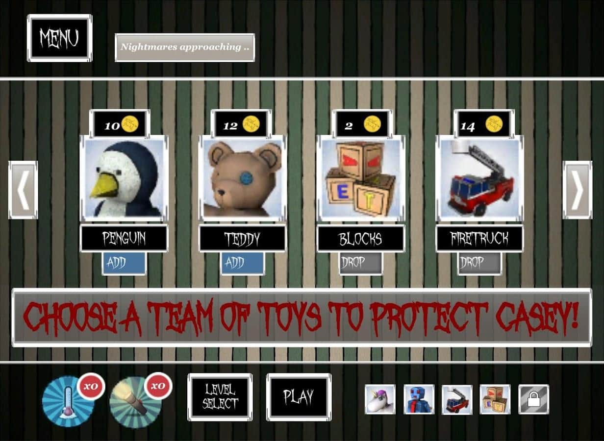 Midnight Terrors - una inusual estrategia táctica de defensa de torres hecha en el estilo de horror. Así que, debes intentar proteger a un pequeño niño llamado Casey de las pesadillas, los recursos con los que debes luchar contra los monstruos nocturnos coinciden bastante con la atmósfera de estos soldados de juguete, tanques de plástico y otros juguetes. La jugabilidad en sí también es notablemente diferente de los representantes clásicos del género.