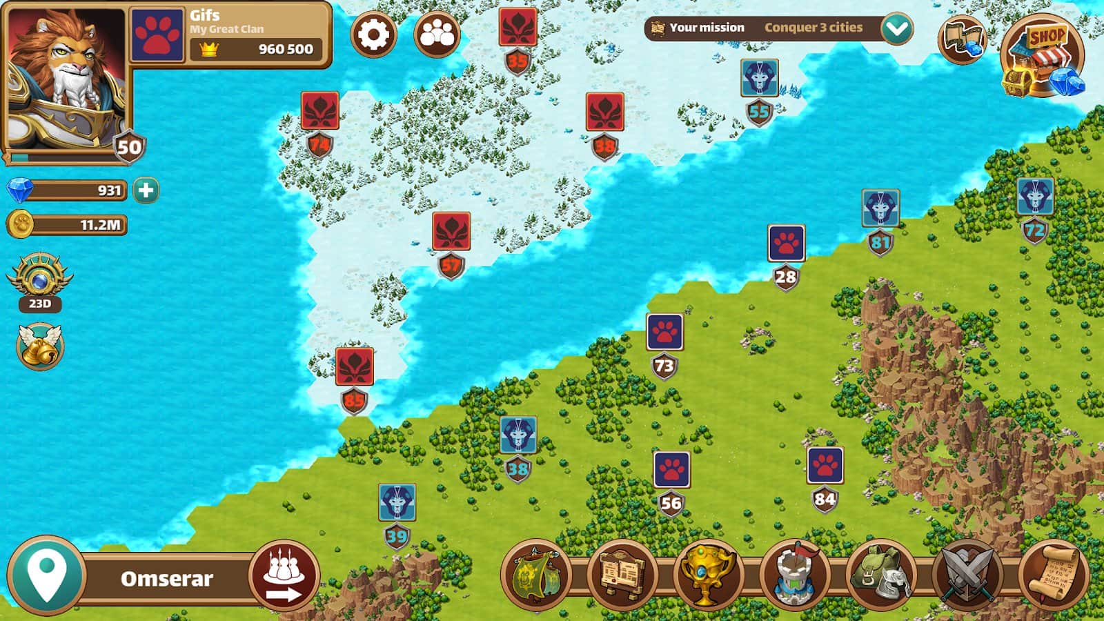 Millions Lords es un juego de estrategia para Android que es diferente de sus contrapartes móviles. Elige tus habilidades y crea tu propio héroe y lucha contra enemigos en esta épica estrategia en tiempo real. Expande tu territorio más allá de todas las expectativas: el único límite es tu determinación. Crea alianzas y lleva a cabo ataques coordinados con tus amigos. Captura tantas ciudades como sea posible y conviértete en el mejor en la tabla de clasificación.