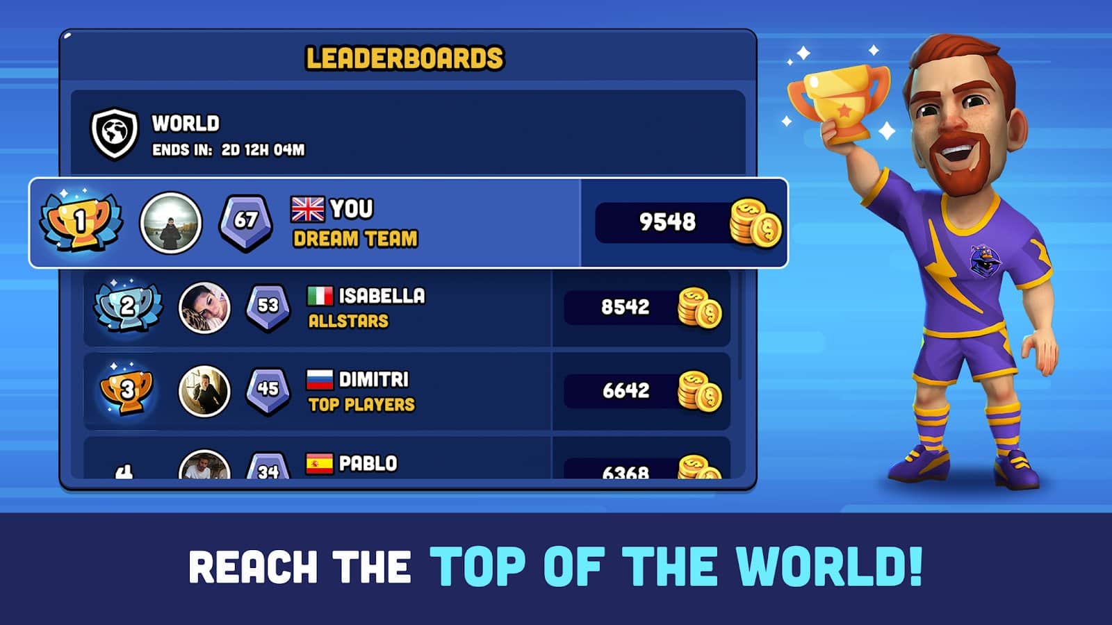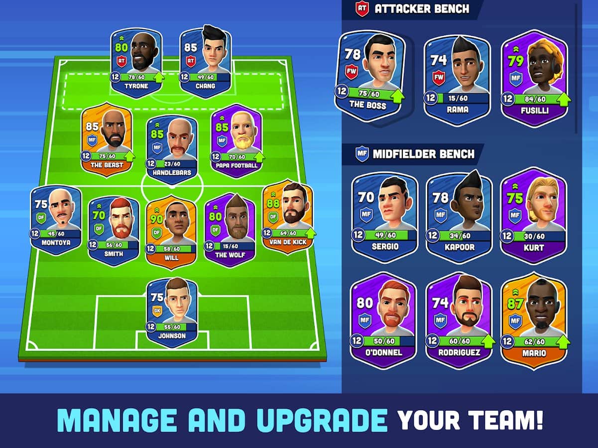 Mini Fútbol – es hora de un verdadero fútbol. Reúne un equipo de los jugadores más fuertes y entrena a tu equipo para competir contra un oponente fuerte, marca goles y gana partidos. Sigue la posición de cada jugador, entrénalos y mejora sus habilidades, conquista los 5 estadios disponibles y coloca en tu estante tu colección de trofeos. Definitivamente selecciona a cada jugador, cambia su apariencia y crea un logo, un uniforme y atributos que aprendiste en todo el mundo. Escala en el ranking y conviértete en invencible.