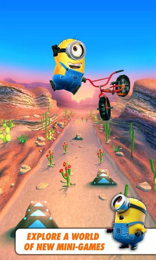 Minion Rush – corredor en Windows Phone con los divertidos minions en el papel principal. En el juego encontrarás toneladas de humor de los divertidos minions, excelentes gráficos brillantes y eventos dinámicos, que no te dejarán aburrido. Corre, salta, esquiva obstáculos y juega diferentes mini juegos. Diviértete con tus amigos, supera su puntuación y conviértete en el ganador!