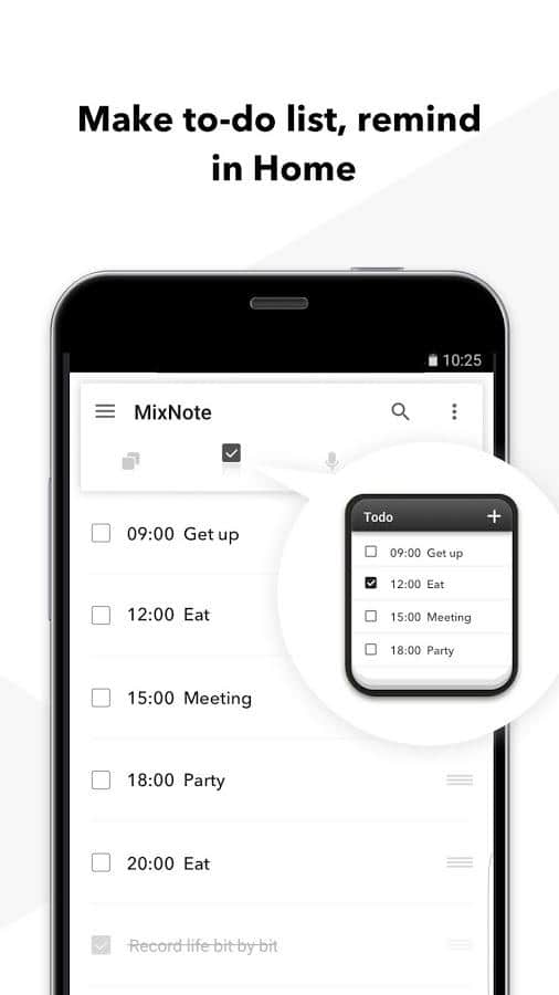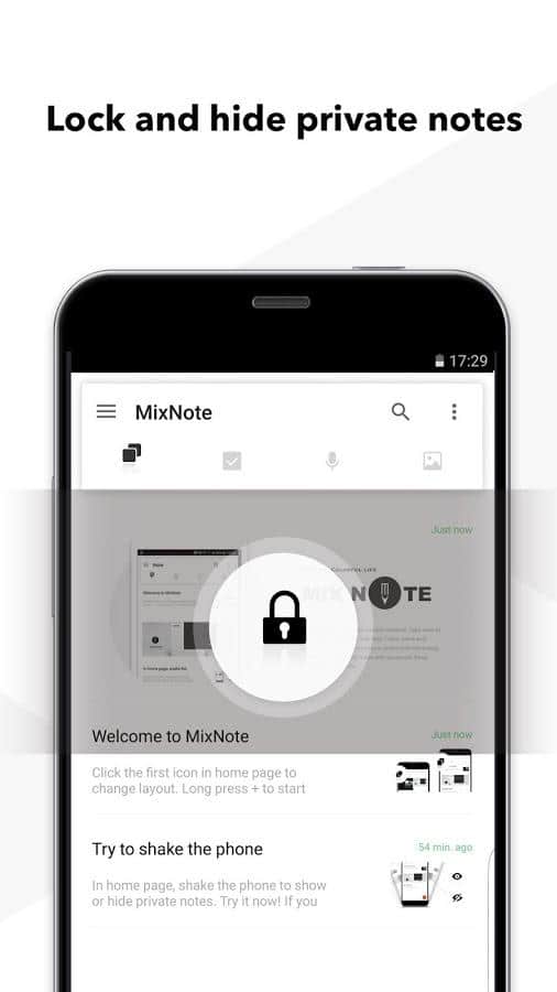 MixNote NotePad Notes es una gran aplicación para tomar notas en la que puedes almacenar no solo entradas de texto, sino también imágenes e incluso mensajes de voz. Crea notas añadiendo texto, imagen y voz en cualquier momento y en cualquier lugar. Anota una idea simplemente. Elabora un plan, escribe sus palabras o voz. Si deseas crear una nota durante una llamada, agita el teléfono para comenzar a grabar voz. No es necesario buscar un bolígrafo y papel. Todas las entradas se guardan automáticamente. Además, puedes proteger todos tus registros con una contraseña.