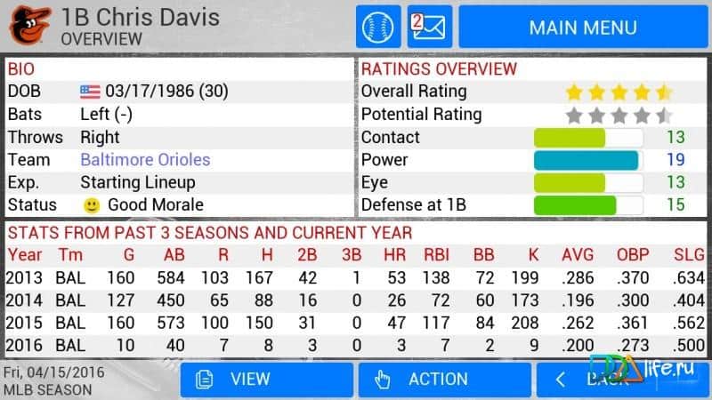 La franquicia deportiva MLB Manager ha ganado una enorme popularidad entre los aficionados y gerentes tanto en Mac como en PC. La principal ventaja del juego, por supuesto, es su modelo detallado y la atmósfera única del béisbol, que se transmite en el juego. Después del lanzamiento en plataformas de escritorio, los desarrolladores decidieron complacer a los propietarios de dispositivos Android, lanzando un puerto completo. MLB Manager 2016 es la segunda parte de la franquicia lanzada en dispositivos móviles, cuya principal novedad fue la elección del modo de juego. El modo realista permite seleccionar uno de los equipos existentes en la Liga en 2016 y participar en toda la temporada. El modo ficticio permitirá crear una liga privada al reclutar equipos y crear ligas y competiciones. El modo histórico dará la oportunidad de jugar en una de las temporadas del pasado. El resto es el mismo gerente deportivo.
