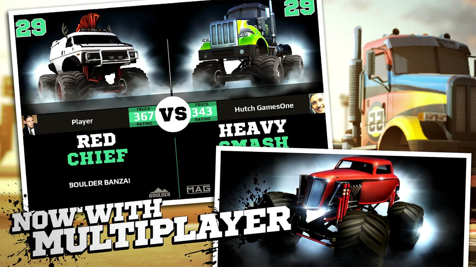MMX racing es un juego de carreras en Android, con enormes camiones y poderosos SUVs. En este juego puedes crear tu propio coche y hacerlo enorme e invencible. Compite en pistas peligrosas con saltos y giros impresionantes, disfruta de excelentes gráficos y física. Adelanta a tus rivales y mejora tus habilidades de conducción a alta velocidad y actualiza tu vehículo después de cada carrera. Te esperan 7 eventos diferentes, 15 pistas empinadas y difíciles, así como una variedad de oponentes con los que podrás competir por el primer lugar en las carreras.
