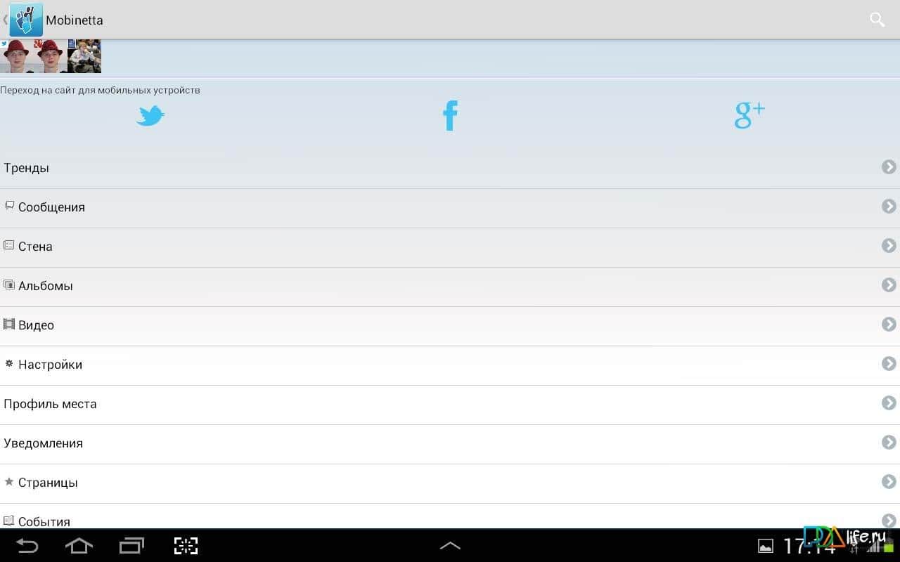 Mobinetta - aplicación para Android que podrá combinar tus cuentas en Google+, Facebook y Twitter. Una de las principales ventajas del programa es que es muy conveniente tener un solo programa para múltiples servicios sociales, sin necesidad de cambiar entre programas o pestañas en el navegador. El programa incluye un gestor conveniente con el que puedes enviar fácilmente mensajes a tus amigos.