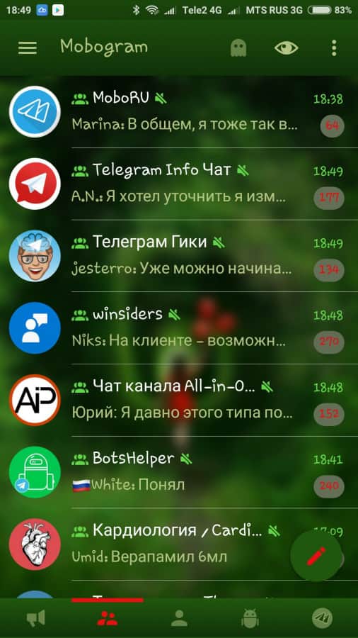 Mobogram - les presentamos un cliente completamente nuevo para la red de telegramas. Su principal diferencia es el soporte del idioma ruso, así como un montón de diferentes características y mejoras. Con él, no solo podrás enviar mensajes de manera más rápida y eficiente, sino que también podrás controlarlo desde tu smartphone, podrás ocultar chats y compartir contactos. Además, puedes cambiar la apariencia según tu gusto, algo que no puedes hacer en el cliente estándar.