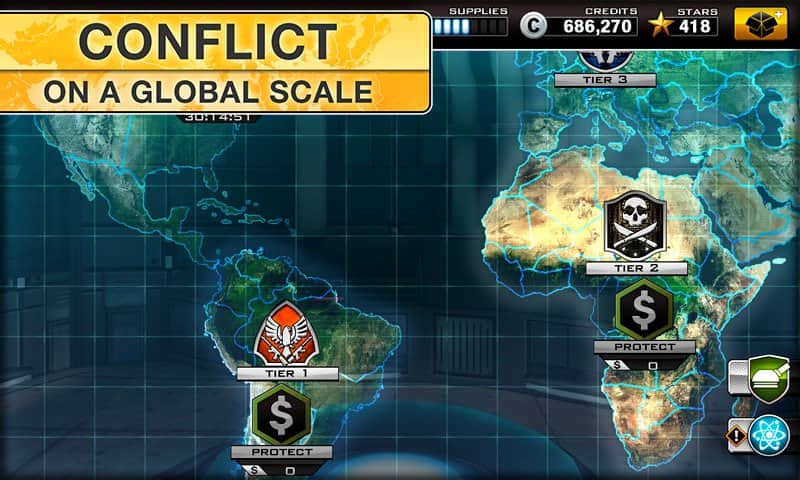 Comando Moderno - estrategia para Android en la que debes construir la base más moderna para prevenir la amenaza de los terroristas. Para construir la base, se te dará la tecnología y las armas más modernas. Comienza la lucha contra el ejército de enemigos que te amenazan a ti y a tu país desde América del Sur, África, Europa y Asia. Desarrolla tu estrategia, aplica nuevos remedios y lleva a cabo varias misiones que se te asignen. Únete a tus amigos y aumenta tu poder.