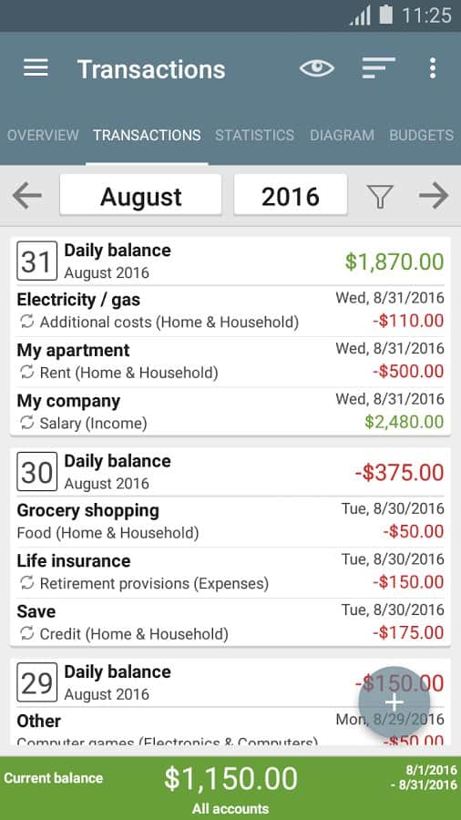 Mi presupuesto está utilizando esta aplicación, podrás contabilizar tus ingresos y gastos y, así, equilibrar tu libro de cheques, controlar óptimamente los fondos existentes y estar al tanto del estado de tus finanzas. Y gracias a la interfaz conveniente, puedes ver fácilmente dónde y cómo gastas tu dinero, no solo en valor numérico sino también en gráficos.