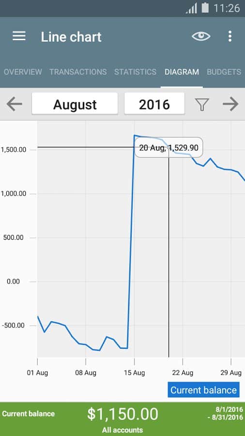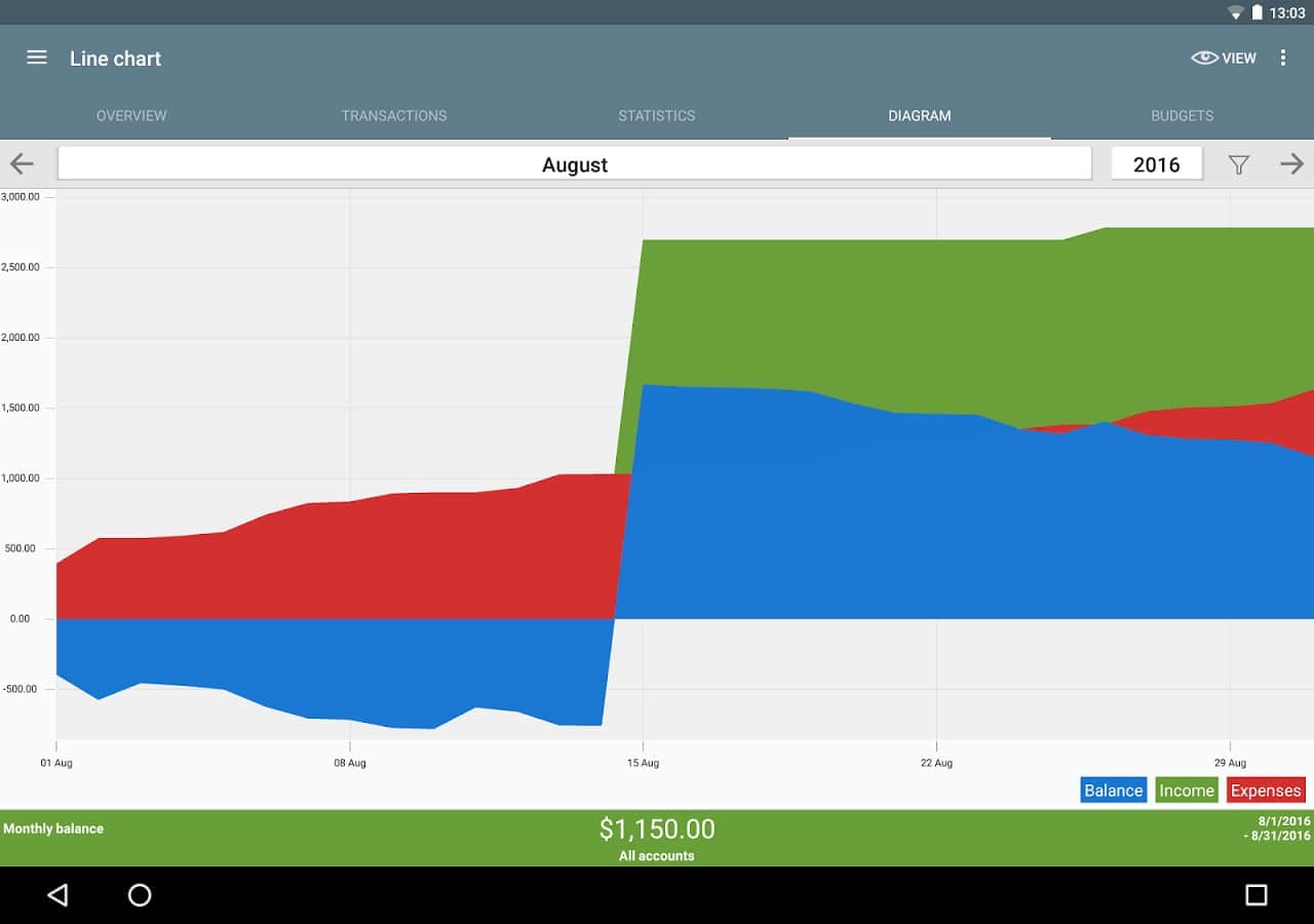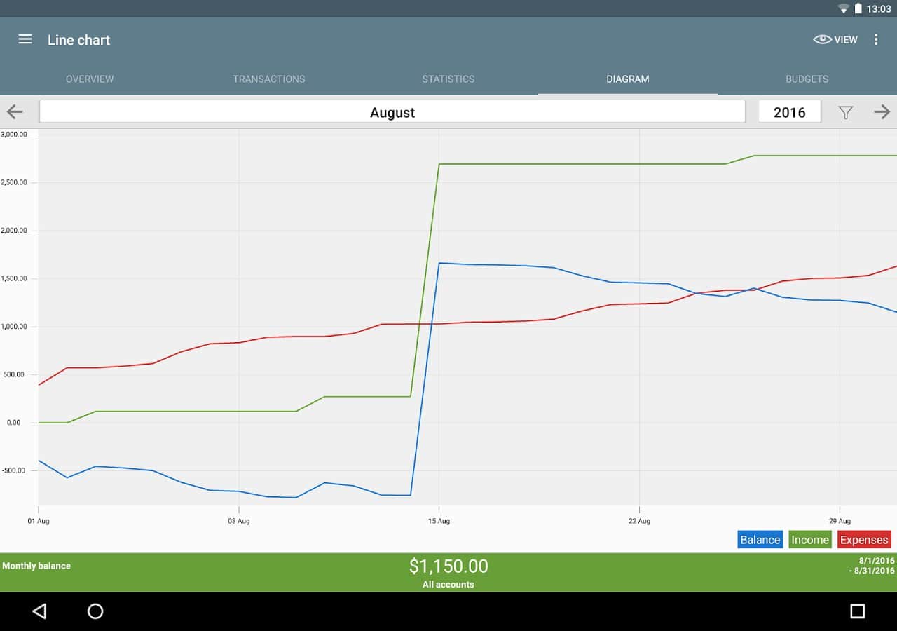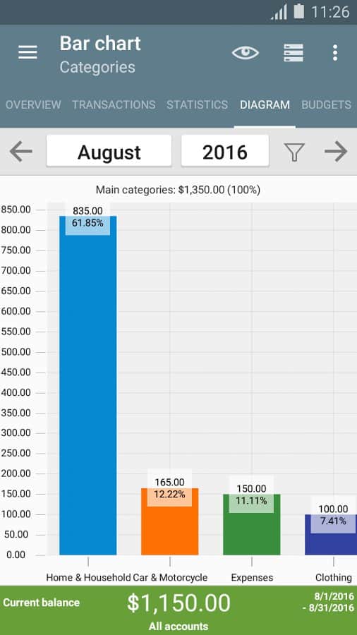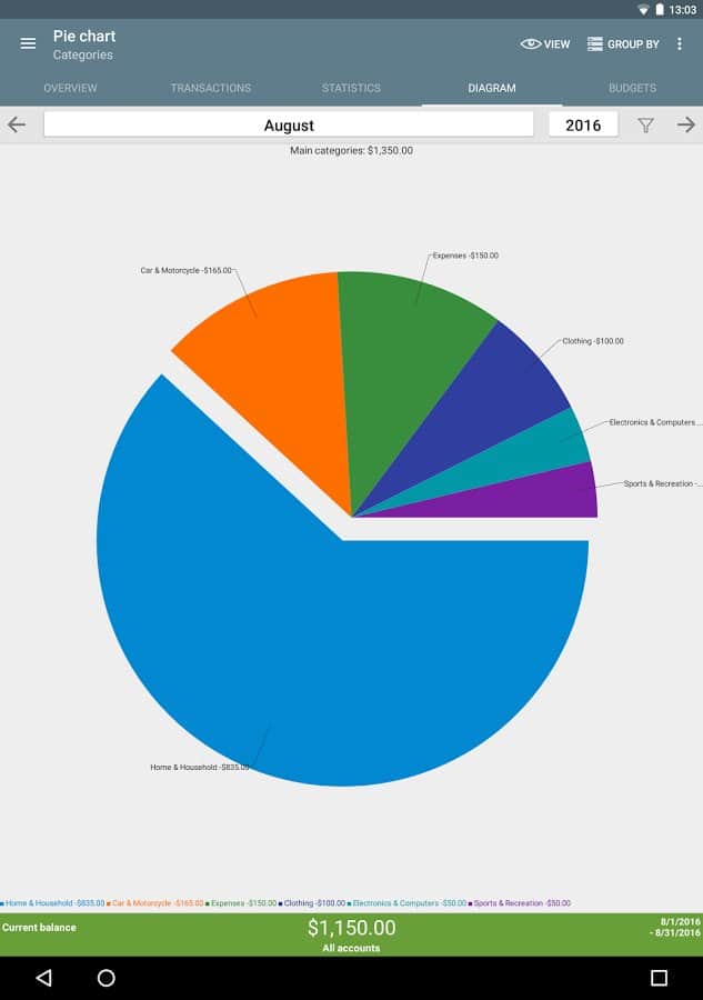 ver el tema "Estadísticas" utilizando una tabla o gráfico y ver dónde gastas tu dinero, asignando tus ingresos y gastos por categoría.