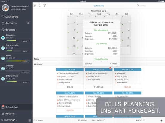 MoneyWiz 2 - Finanzas Personales es un programa multipropósito que proporciona una lista más amplia de instrumentos financieros que van desde cuentas de almacenamiento y billeteras, hasta la planificación del presupuesto.