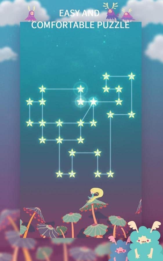 Monodi Estrella Pequeña - Viaja a las estrellas, junto a nuestra heroína principal y sus monstruos pintados. La tarea en este juego es tanto simple como muy compleja. Muchos de nosotros lo jugamos en nuestra infancia, la verdad en papel. Y ahora tienes la oportunidad de jugarlo en tu smartphone. Tienes que conectar todos los puntos con líneas y cada línea solo puede aparecer una vez, la repetición no es aceptable. ¿Recuerdas cómo dibujar una casa con techo, sin despegar las manos de una hoja de papel? ¡Así es lo mismo!