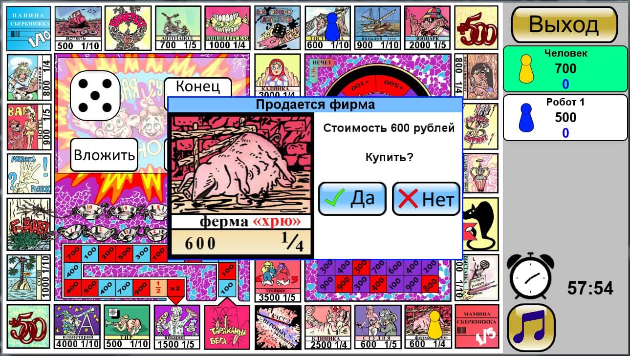 Monopol – Juego de mesa para Android, hecho a semejanza del famoso juego "Monopoly". Este juego no proporciona las reglas del monopoly clásico y es más vívido e interesante que su contraparte. En este juego, tu tarea principal será lanzar los dados y moverte por las casillas mientras intentas comprar todas las casillas no ocupadas de la empresa y hacer que tus competidores se queden en bancarrota. Gana tanto dinero como sea posible y gana en este juego. En el juego puedes jugar con la computadora y con jugadores de todo el mundo.