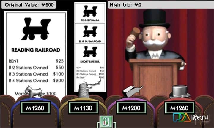 ¿Quién no ha encontrado los tiempos en que jugaba monopoly con todos los niños y padres, cuéntame la esencia? Cada jugador elige su ficha, los jugadores pueden ser de 2 a 4, y cualquiera puede jugar como la IA y tus amigos. A continuación, tira los dados y toma las casillas en cada casilla o estás esperando la oportunidad de comprar el campo (la empresa), o varias sorpresas. Cuantas más empresas compres, más ganancias obtendrás, y si reúnes 3 de la empresa y las colocas en las sucursales adicionales, ¡entonces tus ganancias aumentarán! El objetivo del juego Monopoly para Windows Phone es que tus competidores se queden en bancarrota!