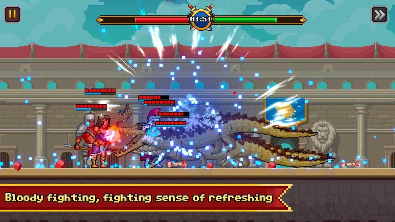 Arena de Monstruos: Lucha y Sangre – crea un equipo imbatible de héroes y lucha contra monstruos y enormes animales. Lleva a la arena a tus guerreros y prepárate para una batalla épica que será a vida o muerte. En este juego, tu tarea principal será derrotar a todos los enemigos y conseguir los tesoros. Utiliza las habilidades de combate únicas de tus héroes y haz todo lo posible para vencer al enemigo. Ensambla tu equipo para que cada personaje complemente la fuerza y habilidades del otro. Solo en este juego hay 170 personajes, 100 habilidades únicas y una cantidad infinita de enemigos.