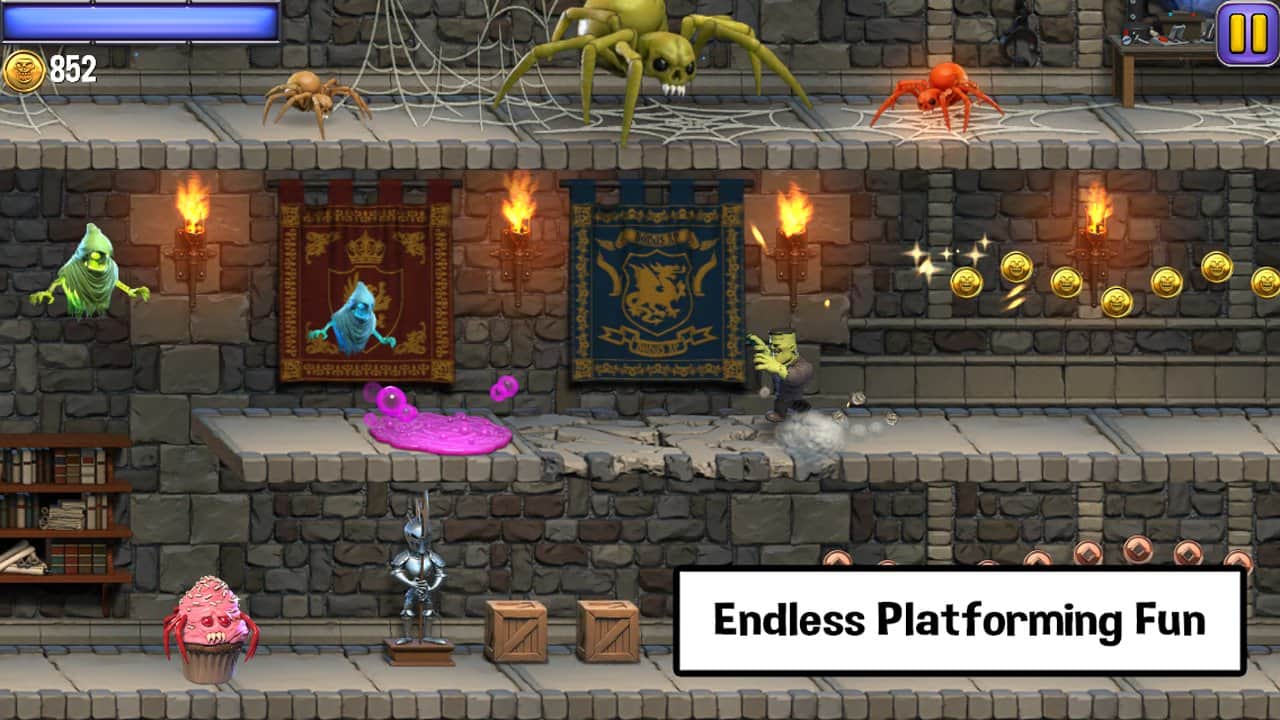 Monster Crew - un corredor horizontal bastante inusual con elementos de un plataforma, cuyo personaje principal era un talentoso niño llamado Frankie. Nuestro héroe, a pesar de su joven edad, pudo crear un verdadero Frankenstein, que se convirtió en su buen amigo. Un día, el niño perdió su colección de cartas raras y algunas cosas importantes, y su monstruoso amigo decidió ayudar a encontrar la colección. Tu tarea es controlar a un monstruo verde para ir a un lugar misterioso y combinar el poder del pensamiento y la fuerza para ayudar al joven genio a no perderse. La mecánica del juego Monster Crew combina varias áreas, y la presencia de una historia y la variedad de tareas hacen que la jugabilidad tenga un impulso y un interés sin precedentes.