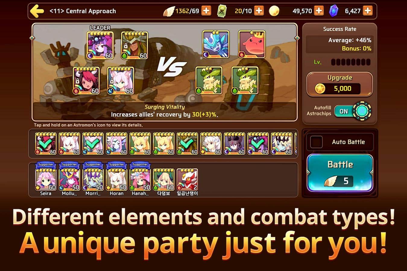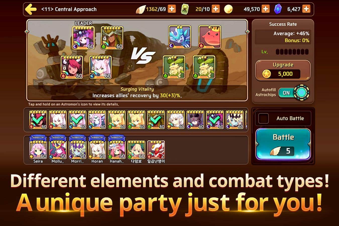 Monster Super League – un juego donde debes coleccionar tu equipo invencible de monstruos. En este juego viajarás a través de numerosas islas flotantes en tu nave aérea. Cada isla es única y tiene muchos monstruos diferentes, únete a ellos en la batalla y gana. Después de una batalla exitosa, podrás construir tu equipo de monstruos con nuevos personajes que tienen un aspecto único y te brindarán nuevas habilidades y características. Guía a tu equipo de monstruos a través de los múltiples mundos del juego y lucha contra enemigos. Realiza todas las tareas asignadas y gana recompensas valiosas.