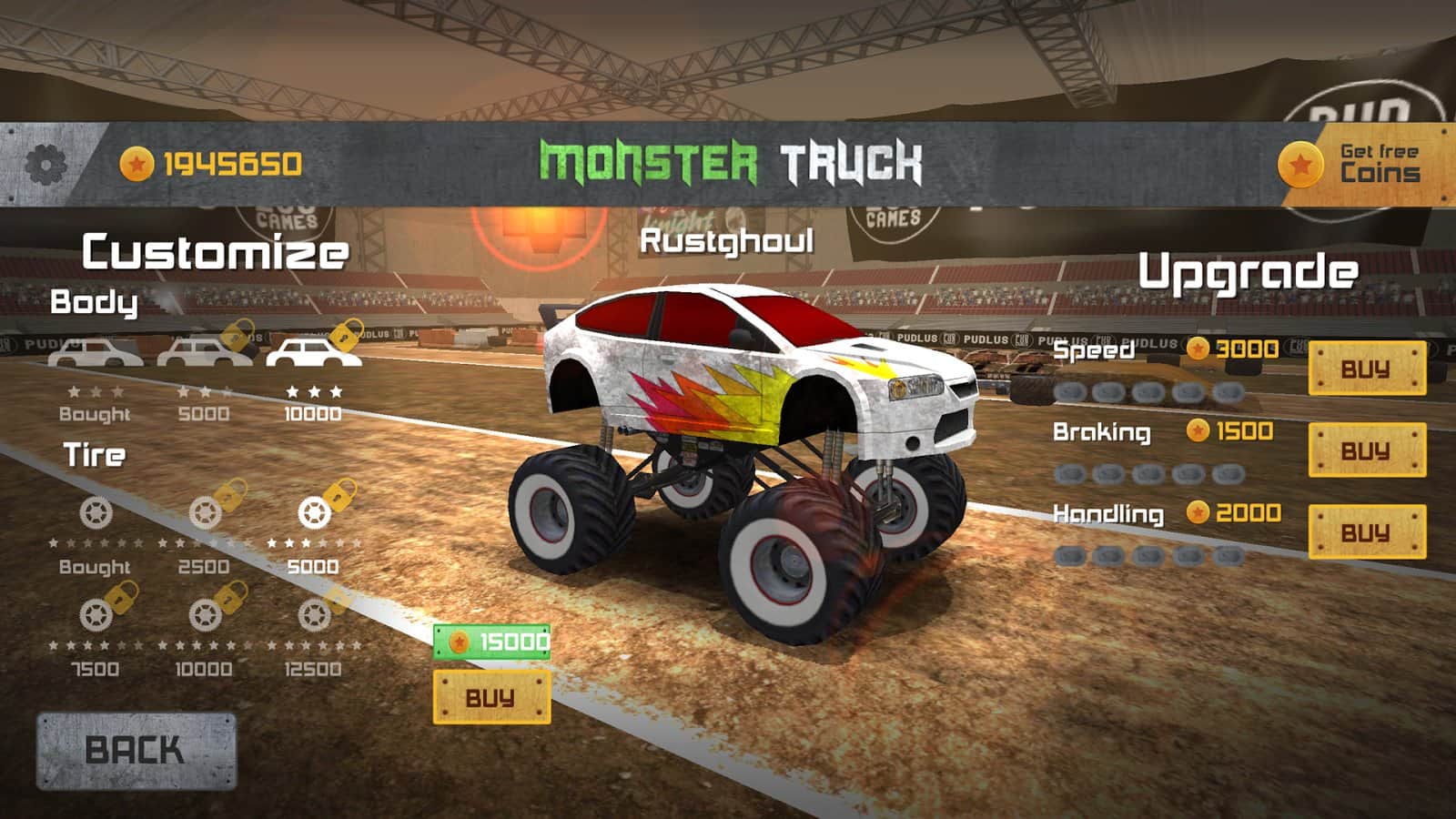 La Carrera de Monster Trucks es una competición de conducción en pistas improvisadas en SUVs con grandes ruedas. Carrozas de tierra, diferentes obstáculos y otros participantes peligrosos te esperan en la arena. Toda la acción tiene lugar en un área cubierta con el público, así que trabajamos para el público y tratamos de mostrar todos los trucos que teníamos ocultos bajo la manga. Una vez que llegamos a la línea de meta, tenemos que preparar el coche para la próxima carrera, para esto es necesario mejorar tu coche o comprar uno nuevo, más potente.