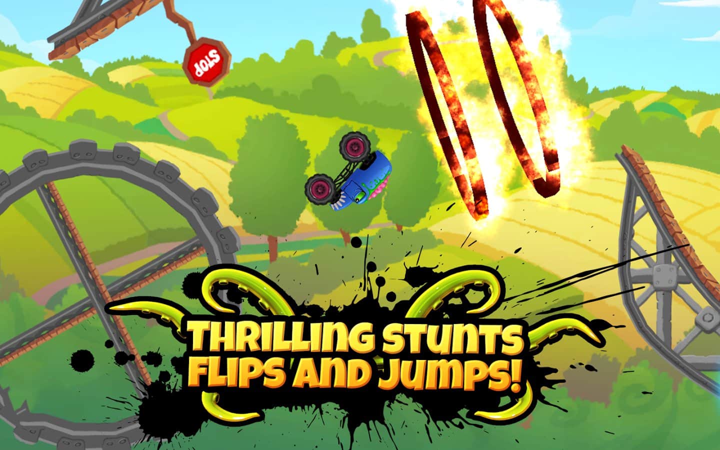 Carrera de Camiones Monstruo de Acción – toma el control de tu camión monstruo y conéctalo en diferentes pistas del juego. En este juego controlarás un camión que puede cambiar su forma y así pasar magistralmente una prueba peligrosa. Persigue la velocidad insana en pistas desafiantes del juego donde escalarás empinadas colinas, atravesarás bucles, puentes estrechos, túneles de fuego y obstáculos de agua. Prepárate para carreras extremas y muestra todas tus habilidades en la operación de la máquina. Por cierto, no olvides recoger monedas de oro y abrir los lugares secretos donde están los bonos ocultos.