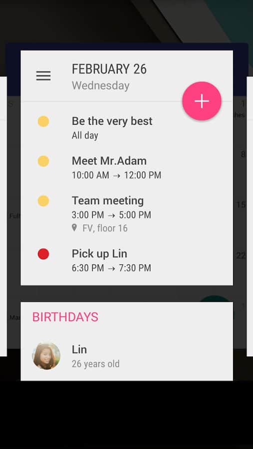 Mes: widget de calendario – te ofrecemos un conjunto de más de 70 de esos calendarios con la capacidad de ver eventos, cumpleaños de amigos, así como el calendario lunar. El Mes tiene una interfaz intuitiva y accesible, por lo que entender lo que estaba sucediendo no será difícil. Descarga.