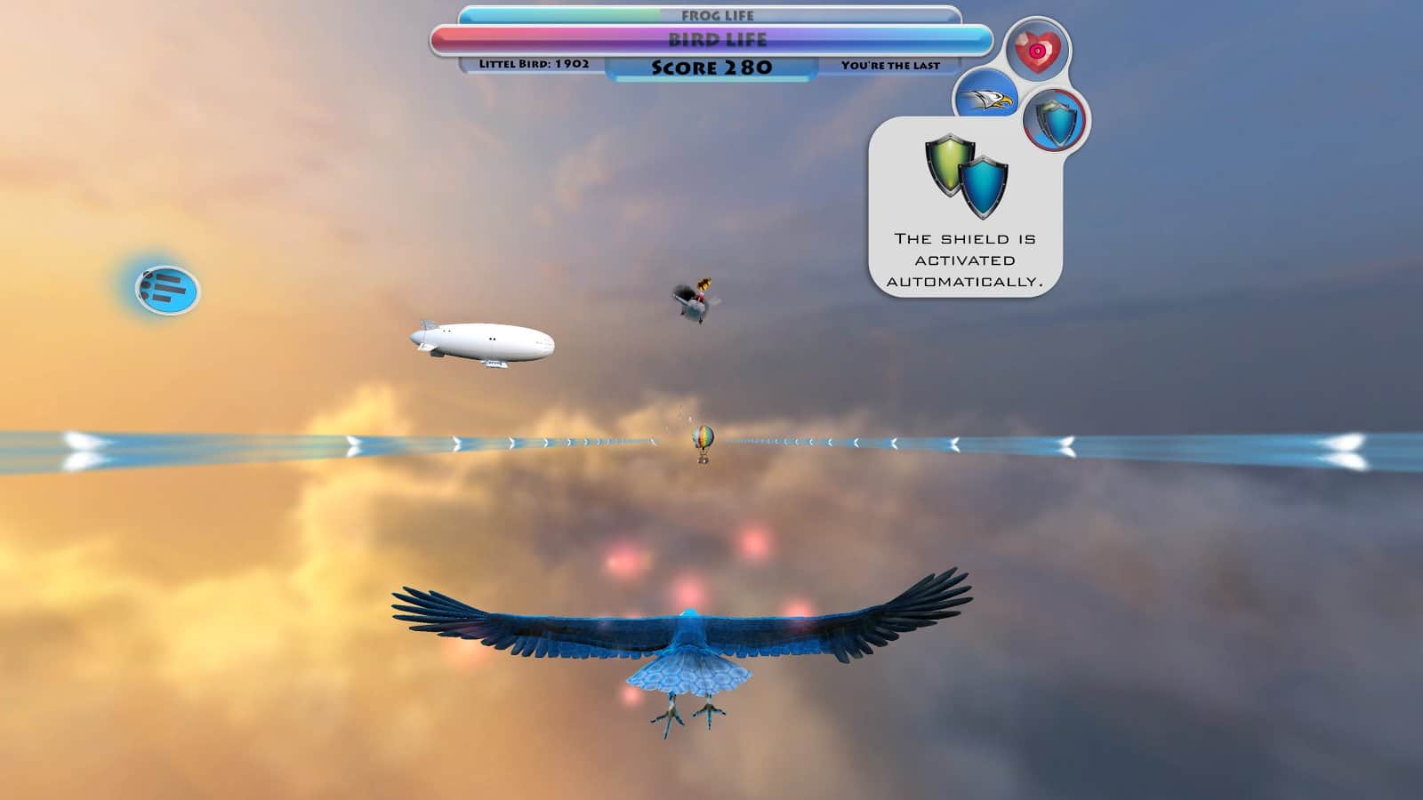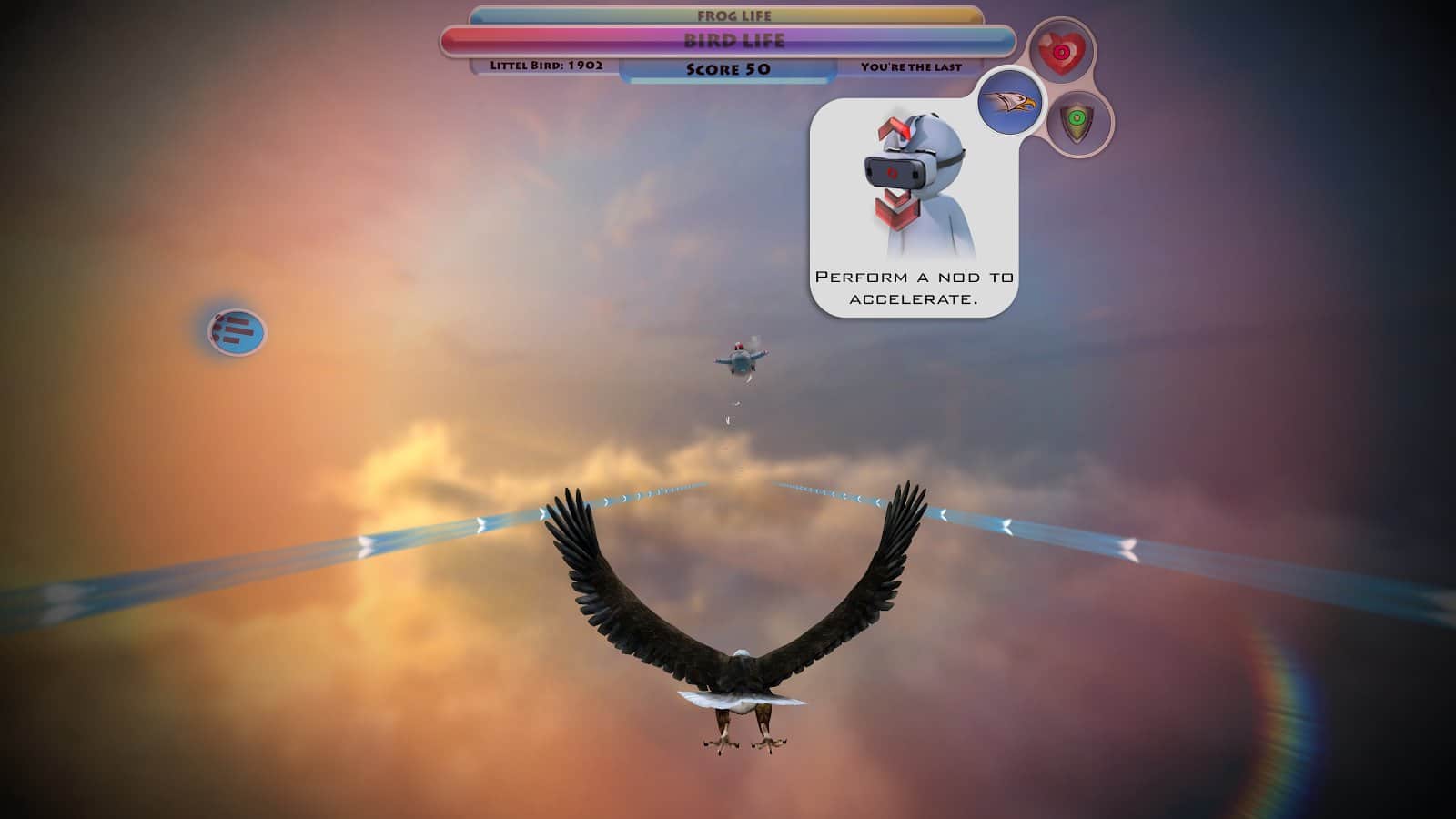 Juego Moon Bird VR para Android que te sumergirá en una realidad virtual de extraordinaria belleza. En este juego controlarás el pájaro que vuela en el enorme espacio sobre la superficie de la luna. Tu tarea principal en este juego es evitar todos los obstáculos en tu camino y recoger bonificaciones útiles. En este juego disfrutarás plenamente de todas las vistas espectaculares, volando sobre las nubes y surcando el cosmos. Inclina el dispositivo en diferentes direcciones para evitar colisiones con asteroides y satélites. No olvides reponer el oxígeno, recogiendo los cilindros.
