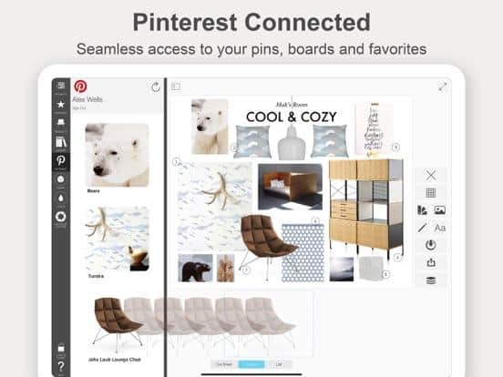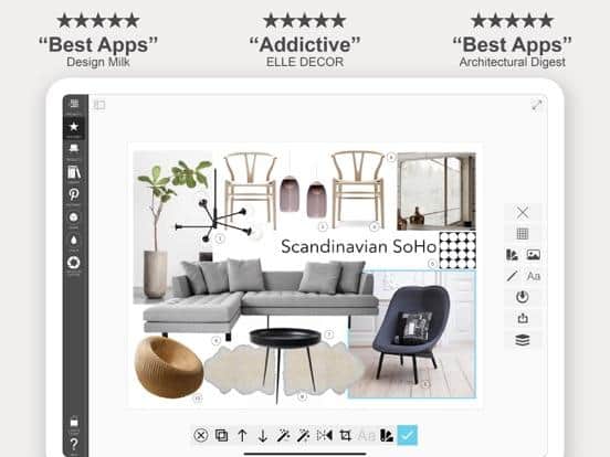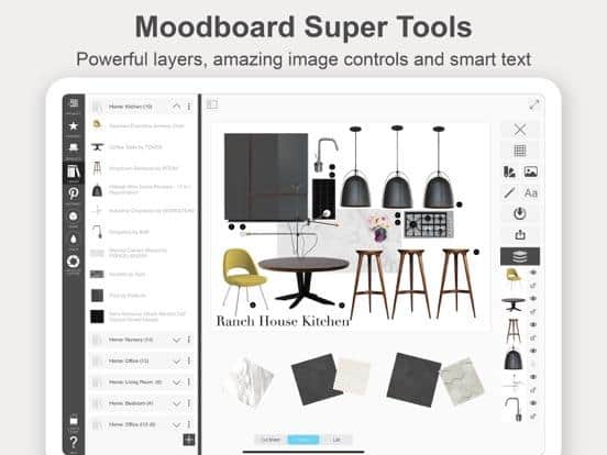 Puedes crear un collage interior, integrarlo y editarlo utilizando el programa Morpholio Board para diseñadores profesionales. Bocetos, dibujos, collages, tableros de interiores: todo esto se puede crear en la aplicación en cuestión de minutos. Recoge colecciones completas de artículos y une grupos. Compón collages utilizando herramientas especiales, ilustra proyectos, utiliza fuentes originales, usa la generación automática de hojas de corte y hojas de cálculo. Aplica varios filtros y elementos a la imagen.