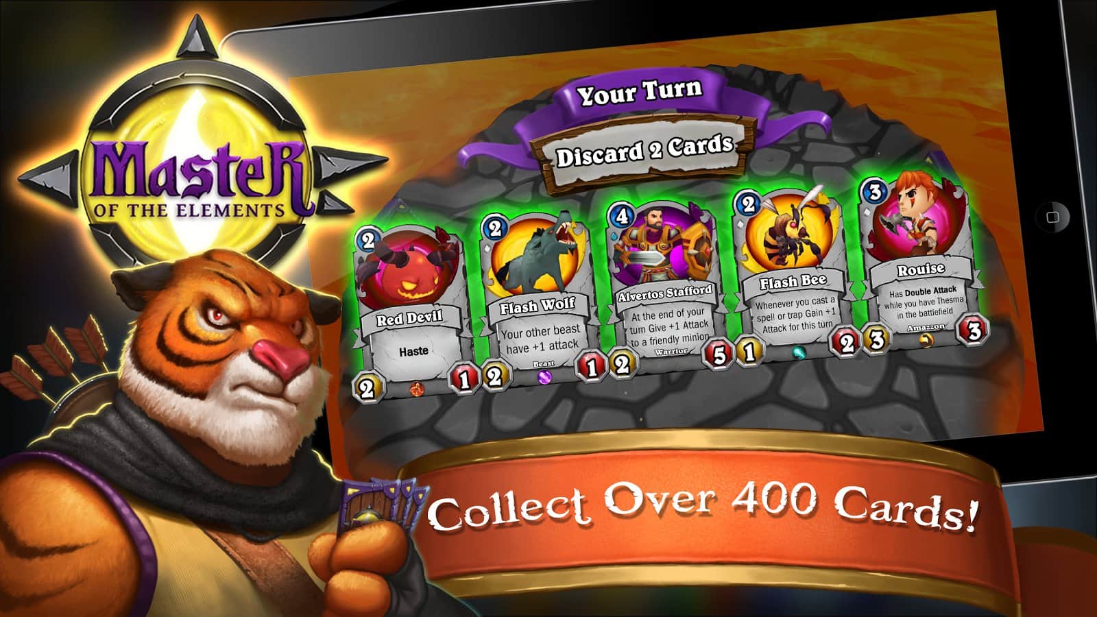 MOTE: Maestro de los Elementos – juego de cartas, donde controlas criaturas míticas. En este juego hay más de 350 cartas únicas de las cuales debes construir tu mazo imbatible y poner a prueba tus habilidades tácticas para vencer al oponente. Considera cuidadosamente cada paso en la batalla y utiliza hechizos y poderosos equipos de tus héroes para lograr la victoria. Mejora tu colección con nuevos personajes y domina los diversos elementos, aplastando enemigos poderosos. Lucha en la arena contra jugadores de todo el mundo y derrotalos en una batalla desigual.