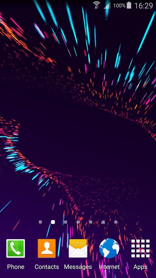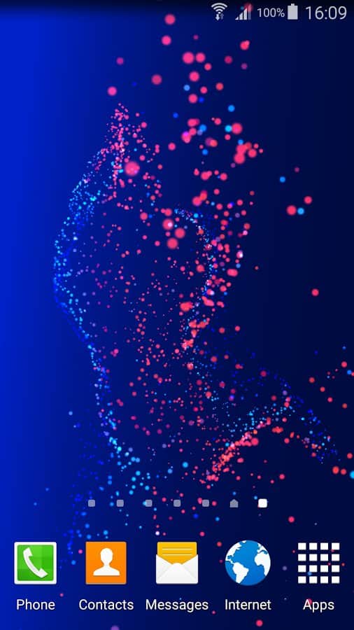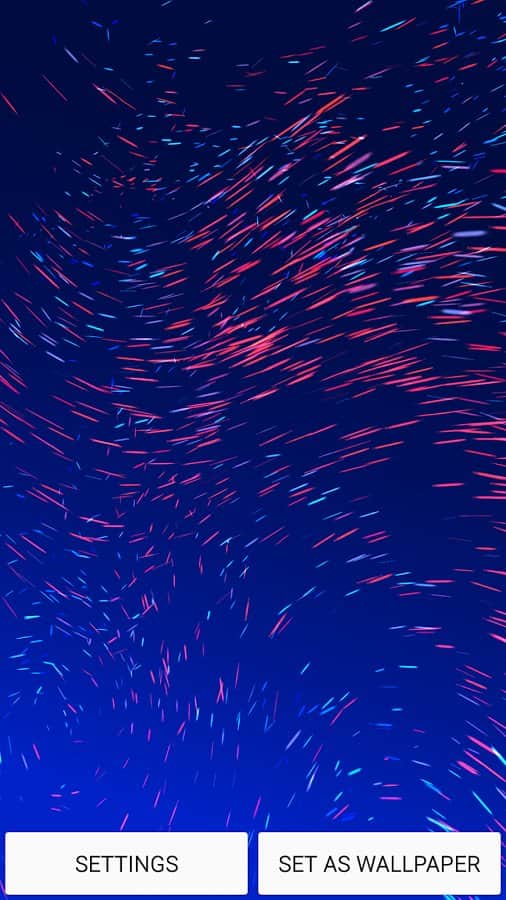 Movimiento – un papel pintado en vivo dinámico que representa partículas voladoras al azar de diferentes colores. La aplicación presenta el actualmente de moda efecto de paralaje. Además, puedes crear un papel pintado estático. Para crearlos, necesitas tocar dos veces para abrir la configuración.