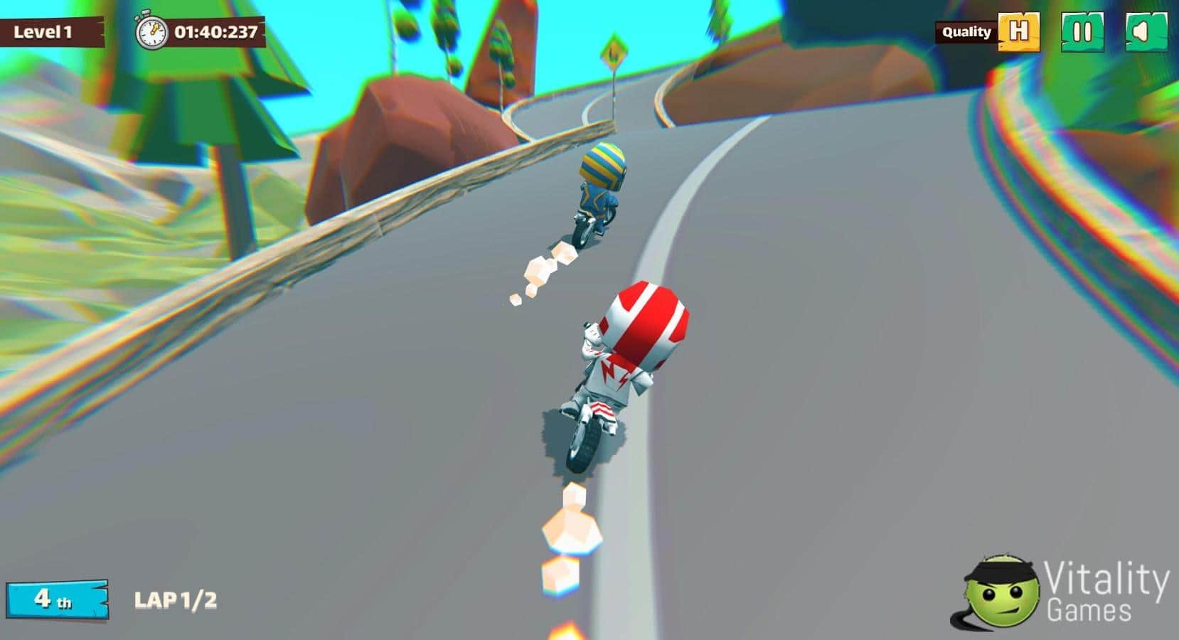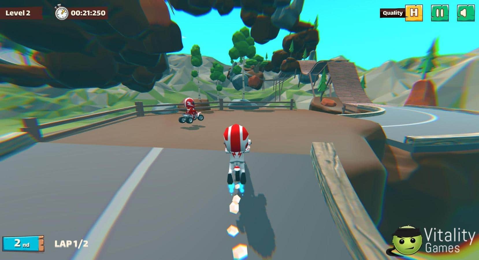 Carrera de Moto Trial – toma el control de tu motocicleta y conduéla por las rutas sinuosas y peligrosas del juego. Tu tarea principal será manejar una motocicleta y llevarla a través de los muchos obstáculos en el camino hacia la meta. Prepárate para pruebas extremas, donde montarás en pistas de bosque y montaña. Acelera a máxima velocidad y realiza acrobacias increíbles, volando por trampolines y superando abismos. Deslízate por pendientes pronunciadas y gana recompensas que te permitirán acceder a nuevas motos y quads. Compite contra la computadora o atraviesa la compañía en solitario.