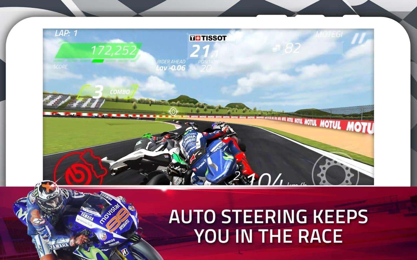 Las difíciles pistas ovaladas en el Campeonato de Carreras de MotoGP solo podrán ser conquistadas por un piloto profesional en una motocicleta. Inmediatamente después de iniciar la aplicación, comienza el campeonato mundial, donde participa el jugador. Gráficos coloridos y el sonido correcto añaden realismo y brindan la oportunidad de sentirse en el lugar de un piloto profesional de motociclismo que busca obtener el título. Solo queda evitar accidentes y vencer regularmente a tus oponentes, ellos llevarán gradualmente al jugador a la cima de las clasificaciones. ¡Disfruta del juego!