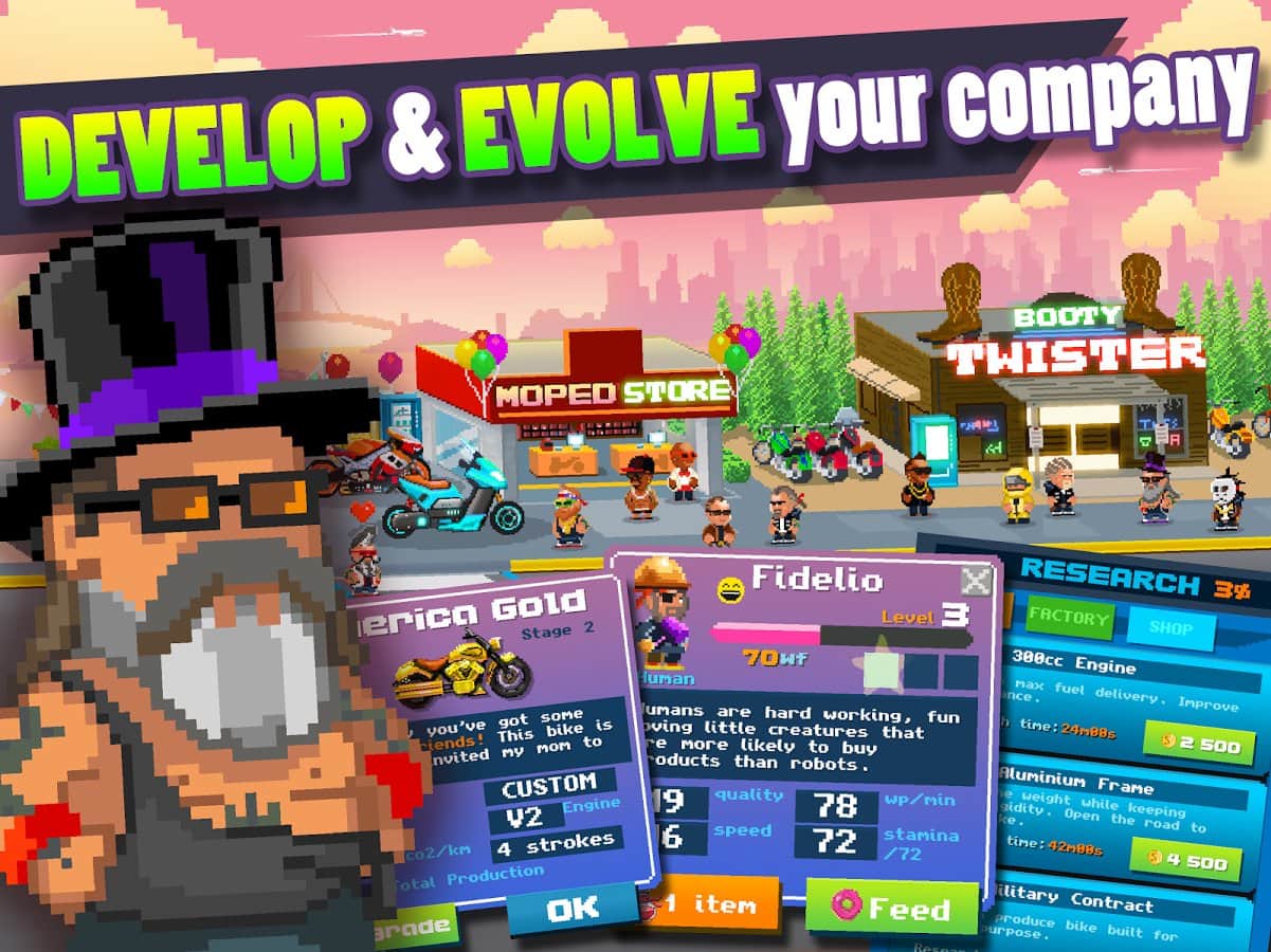 Motor World: Fábrica de Motocicletas – un juego en Android donde tomas el control de la planta para la producción de motocicletas. En su fábrica podrás ensamblar scooters, motocicletas clásicas, motocicletas deportivas y bicicletas. Reúne diferentes modelos de motocicletas, partes disponibles y recluta más trabajadores y mejora su equipo. Por cada misión completada con éxito recibirás recompensas en forma de nuevas piezas para motocicletas. Mejora tu planta y reúne modelos contemporáneos de motocicletas, que podrás probar en las calles de la ciudad, conduciendo con tus amigos. Ayuda a tus amigos a crear motocicletas únicas y recibe regalos de ellos.