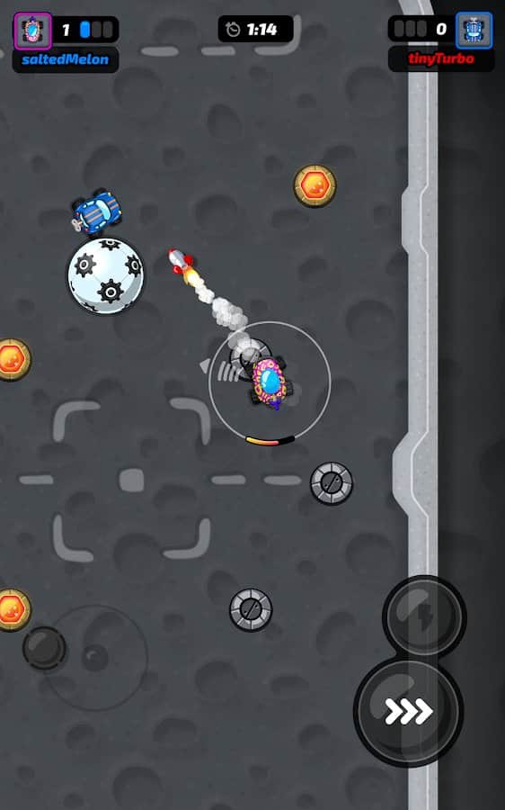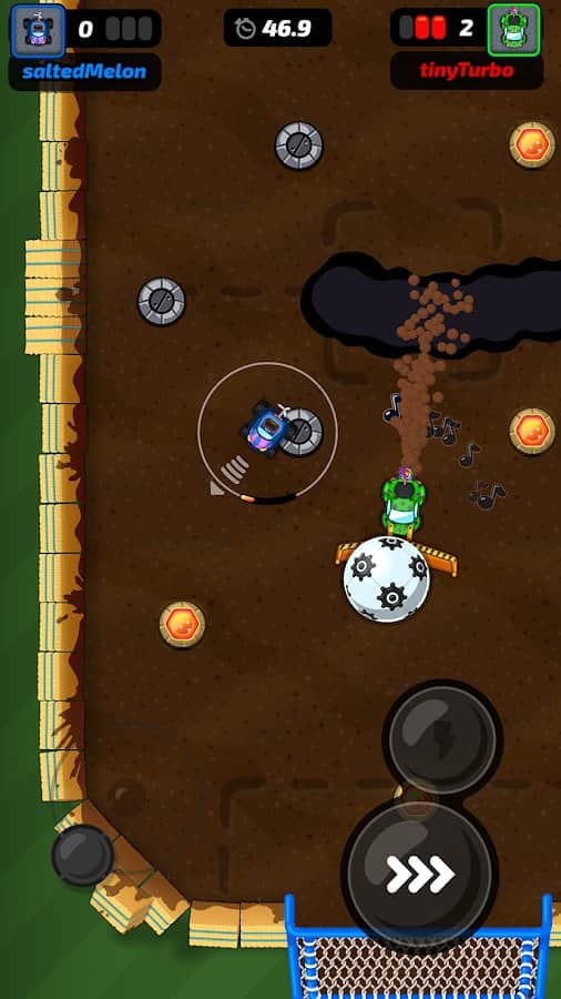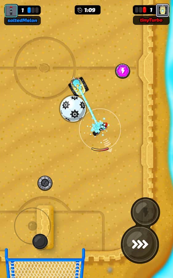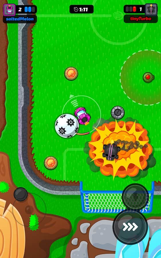 Motorball – un juego para aficionados al fútbol. Podrás disfrutar del proceso en cualquier lugar desde tu smartphone, solo en una versión mejorada. Ponte al volante de un coche y dirígete a un campo de juego especial. ¡Es un Motorola! Como jugadores serán automovilistas. Desarrolla la velocidad deseada y toma las curvas de manera dramática, juega con otros usuarios y organiza la dura competencia. Elige un coche, cambia su color, gana suficiente dinero para mejorar sus accesorios y conviértete en el mejor jugador del equipo.