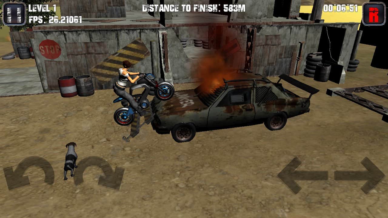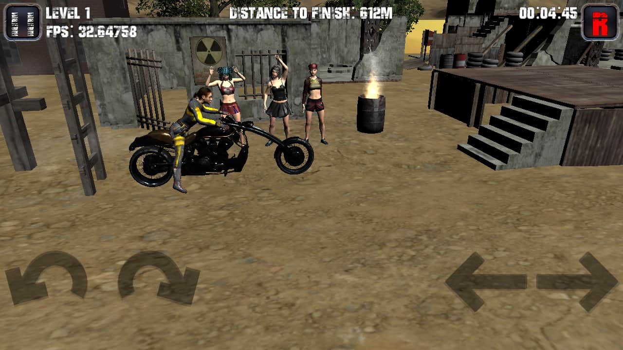 Juego de motocicletas – un juego en Android donde tomas el control de tu poderosa moto y te enfrentará a muchas ubicaciones peligrosas. Tu tarea principal en este juego es avanzar y superar muchos obstáculos en un corto período de tiempo. Delante de ti hay una variedad de ubicaciones como colinas de piedra, casas destruidas y los altibajos en las escaleras. Con cada nuevo nivel, la complejidad del juego aumentará, lo que añadirá más interés al juego. Pasa el punto de control y continúa jugando desde el punto donde terminaste.