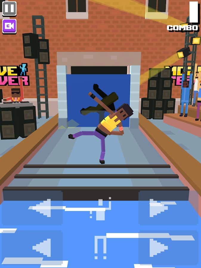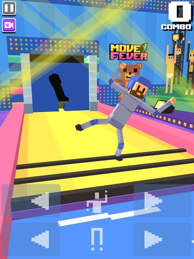 Fiebre de Movimiento – participa en un loco programa de televisión en este juego para Android. Tu personaje aparecerá en el escenario y se acercará lentamente a las paredes talladas con siluetas. Cambia la posición y la postura del héroe y pasa a través de la pared. Gana puntos y desbloquea nuevos personajes. Puedes cambiar la situación del protagonista por separado en la parte superior e inferior. Si no logras pasar a través de la pared, esta se derrumbará o te empujará. Compite por los mejores puntajes con otros jugadores y sube más alto en la tabla de clasificación.